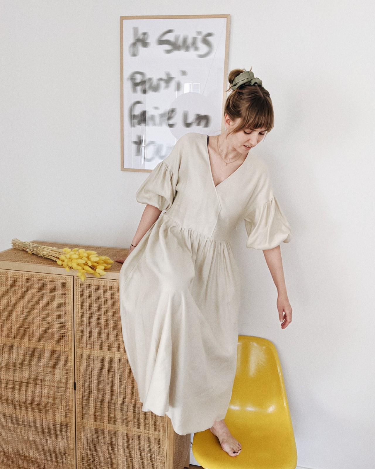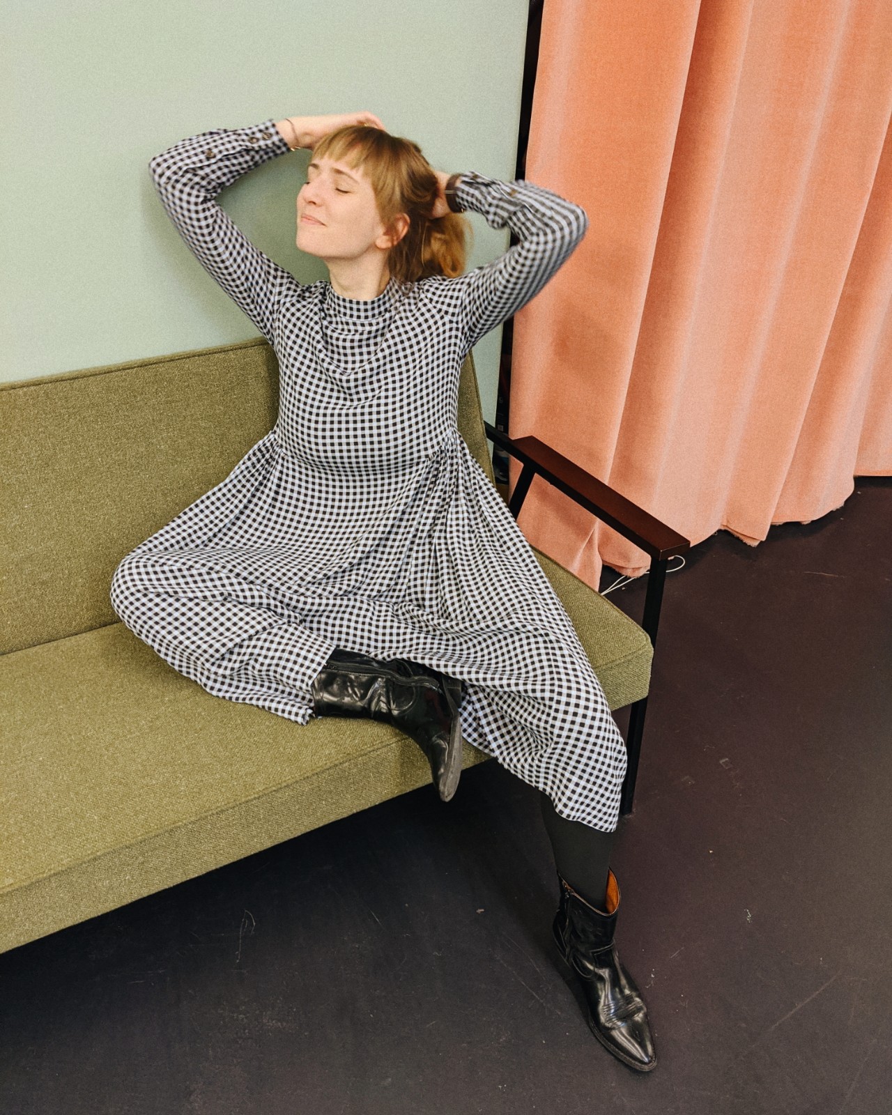 Kleid: Ganni (ähnlich hier), Boots: KdG x Jane Wayne (ähnlich hier)