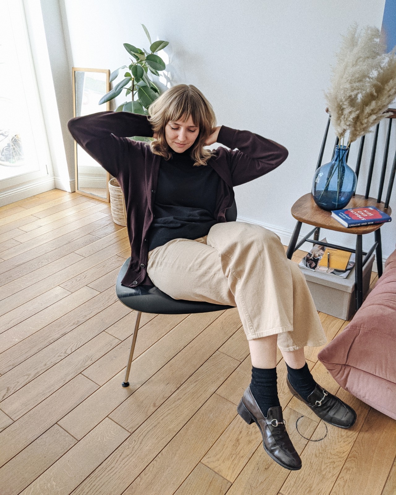 Cardigan: Uniqlo, Pulli: Arket, Jeans: & Other Stories & Schuhe: Gucci 2nd Hand