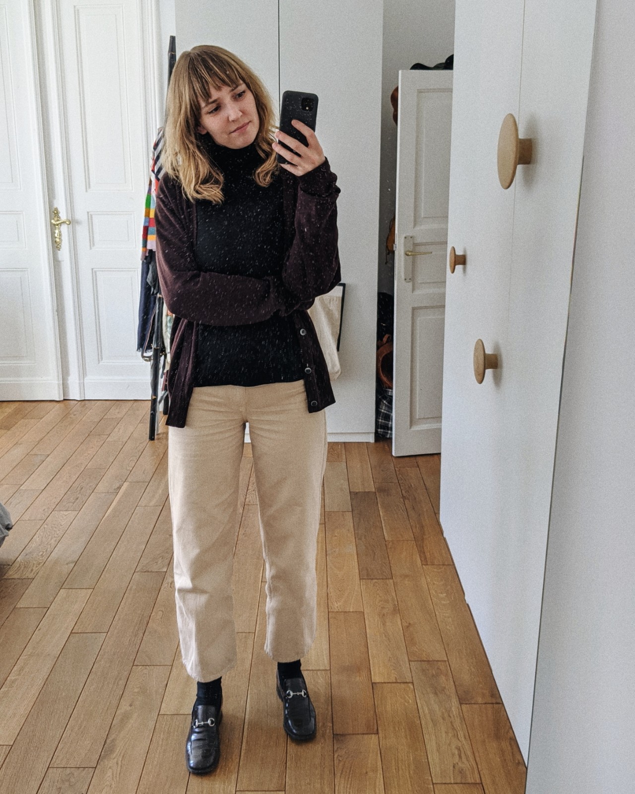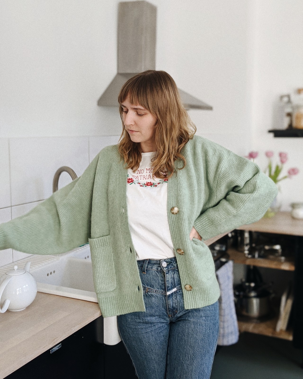 Cardigan: & Other Stories, Shirt: KdG x Jane Wayne (leider alt), Jeans: Closed Pedal Pusher