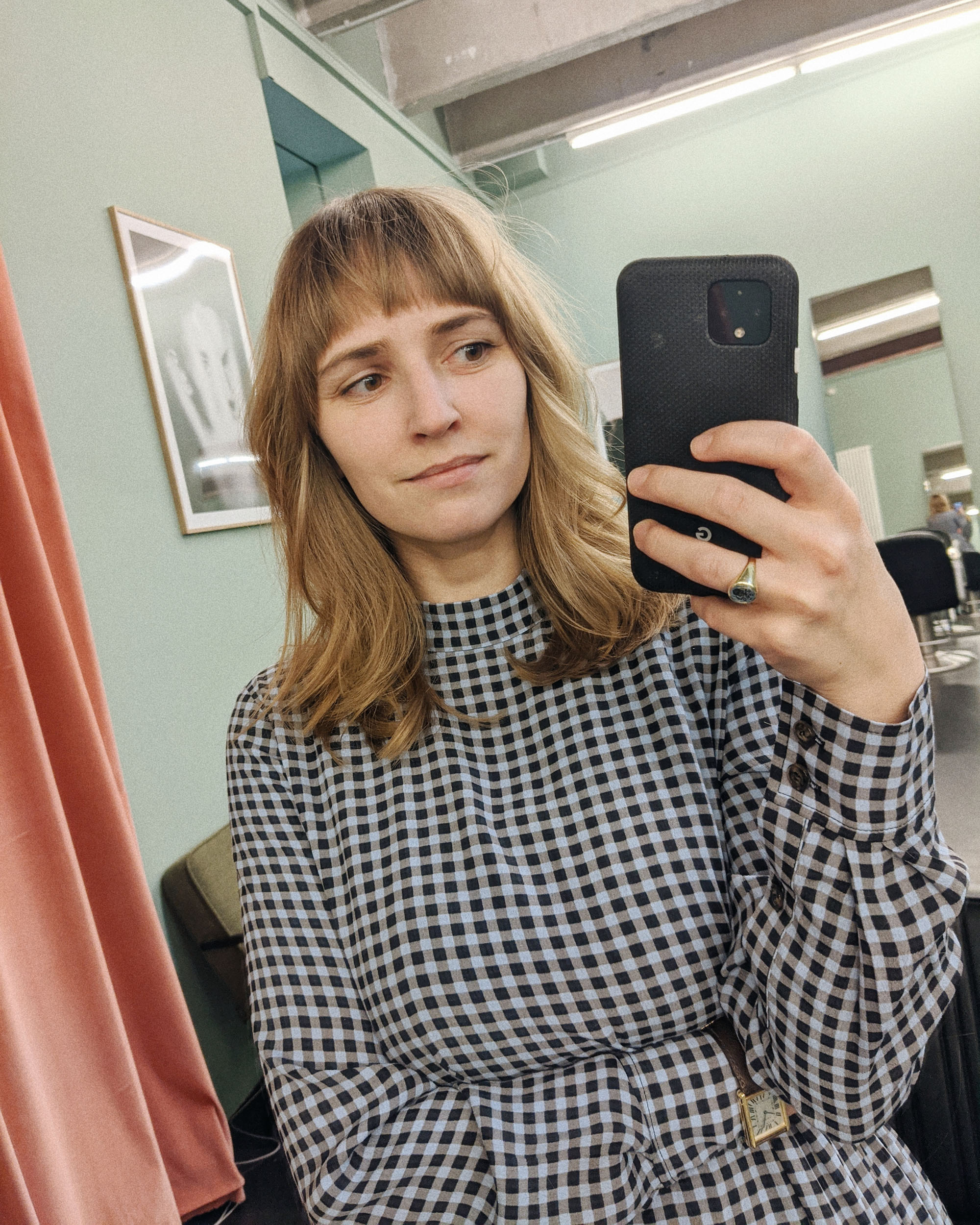 Pünktlich zu meiner persönlichen Quarantäne ging es vergangenen Freitag zum ersten Mal nach unglaublichen 14 Jahren zur Friseurin, um mir endlich mal wieder einen Pony schneiden zu lassen und meinen Fransen einen Schnitt zu verpassen. Meine Schwester hat in den vergangenen Jahren stets für Veränderungen auf meinem Kopf gesorgt, die Entfernung und die gegenwärtige Situation machten es uns nun aber unmöglich, an alte Traditionen anzuknüpfen und für ein kleines Make-Over zu sorgen. So ganz zufrieden bin ich mit dem Ergebnis noch nicht, was aber keineswegs an dem Schnitt liegt, sondern an dem unstillbaren Durst, noch einen Schritt weiter zu gehen: Mit Farbe zum Beispiel oder doch mit noch mehr fallenden Haaren.