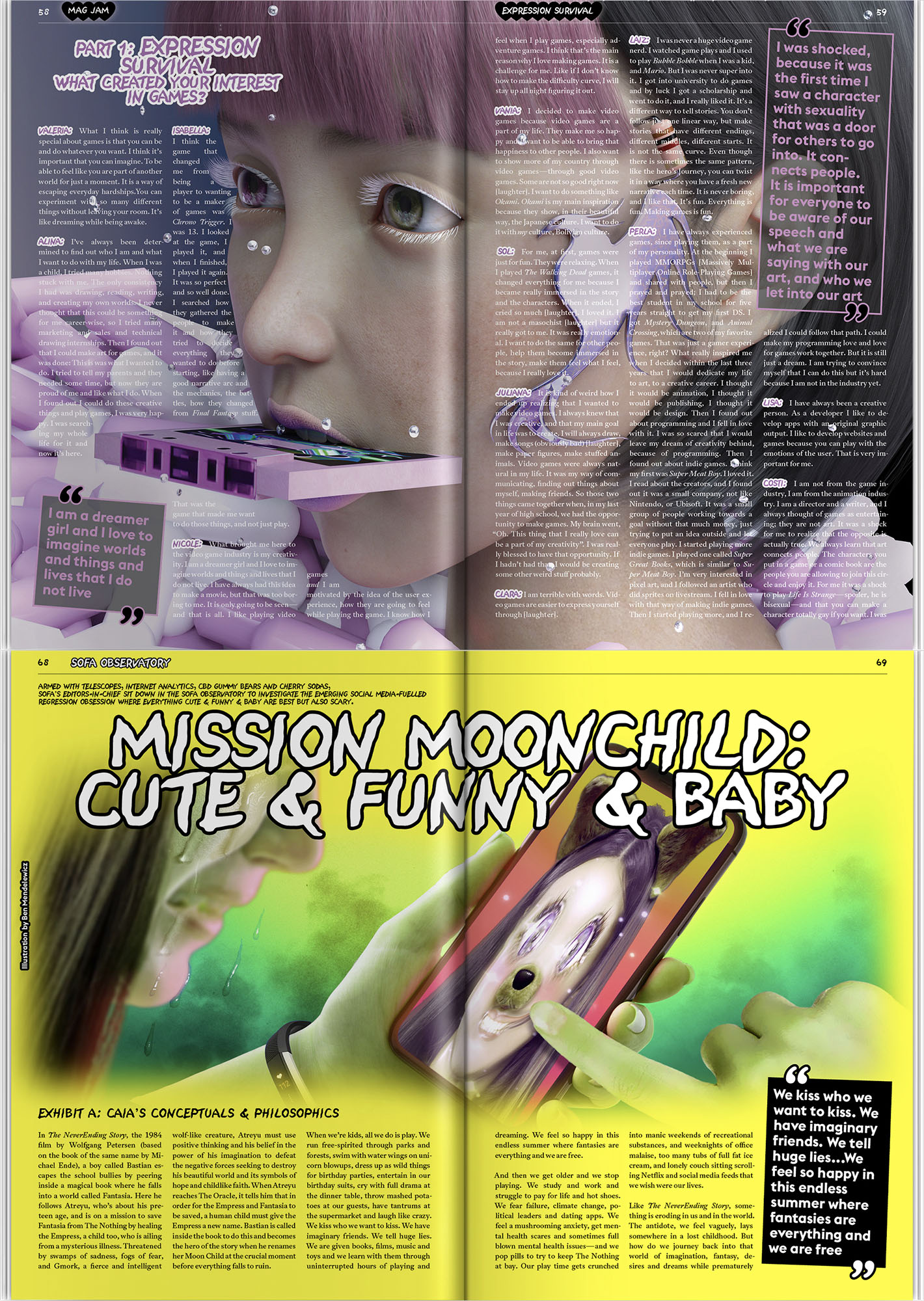 Ricarda: Ich glaube mit dieser vierten Ausgabe ist uns am besten gelungen, wie wir High und Low Culture miteinander verbunden haben. Studio Yukiko, das tolle Design-Studio hinter Sofa, hat dieses Mal noch extremer jeder Geschichte, jedem Mikro-Universum seine eigene visuelle Sprache gegeben.