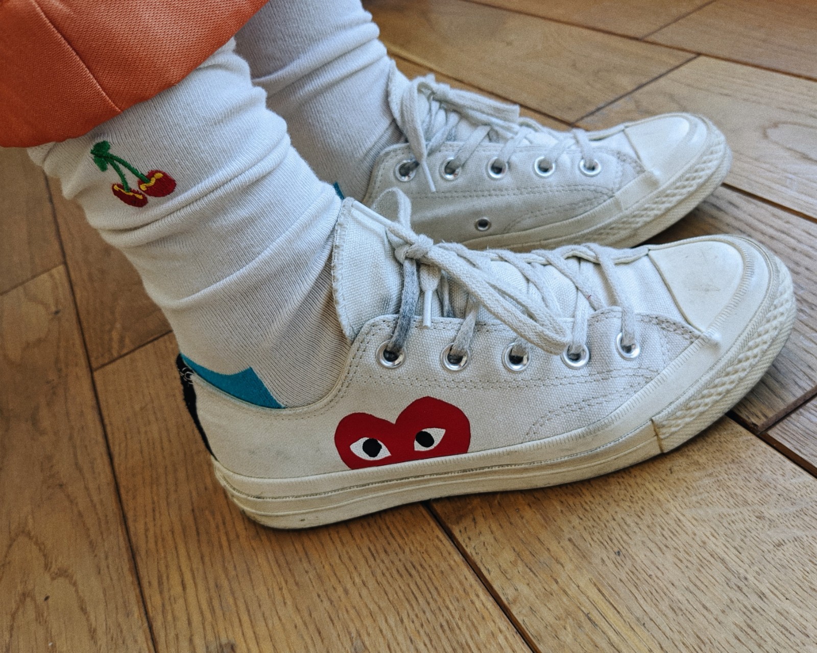 Schuhe: Comme des Garçons Play x Converse, Socken: Happy Socks