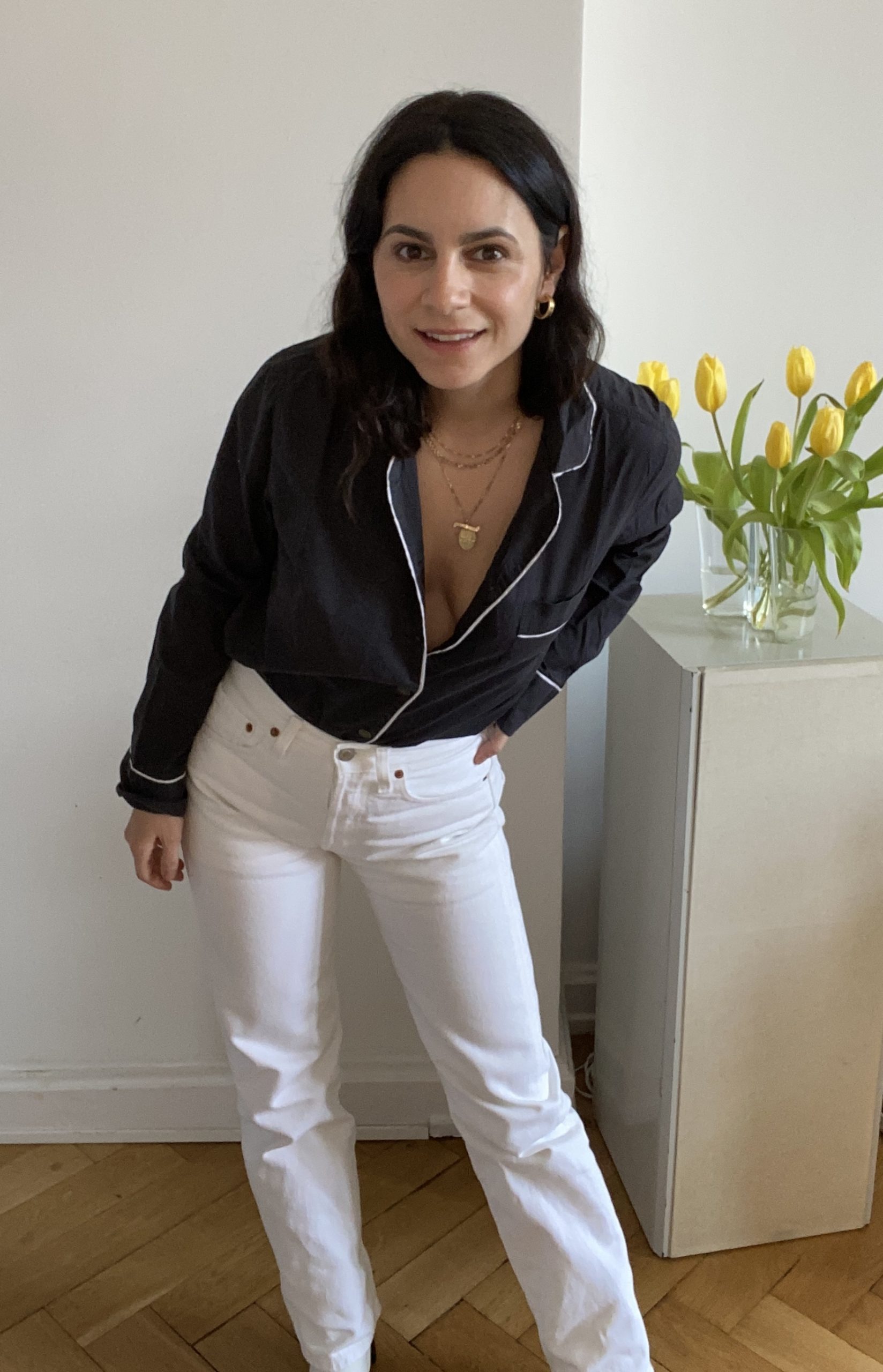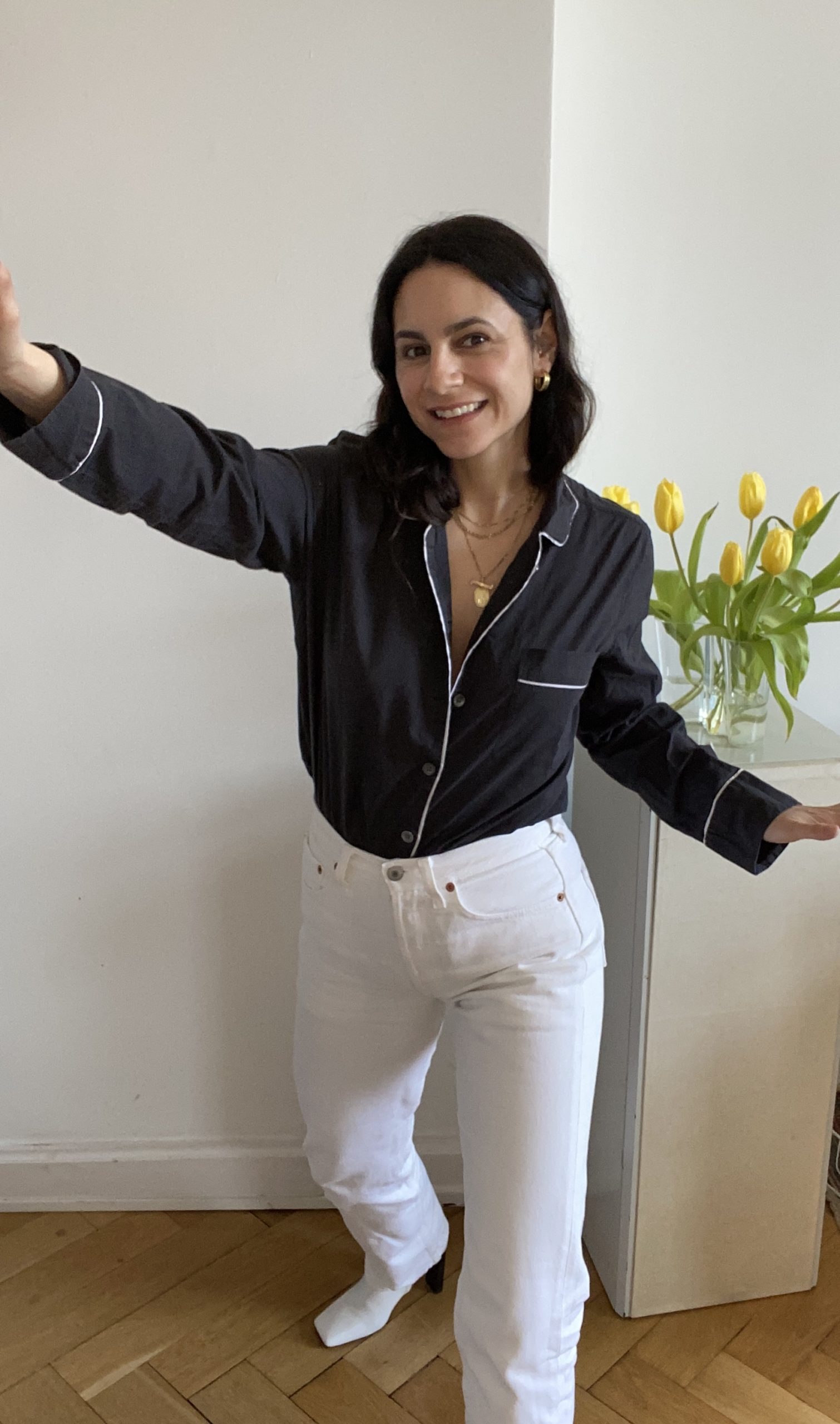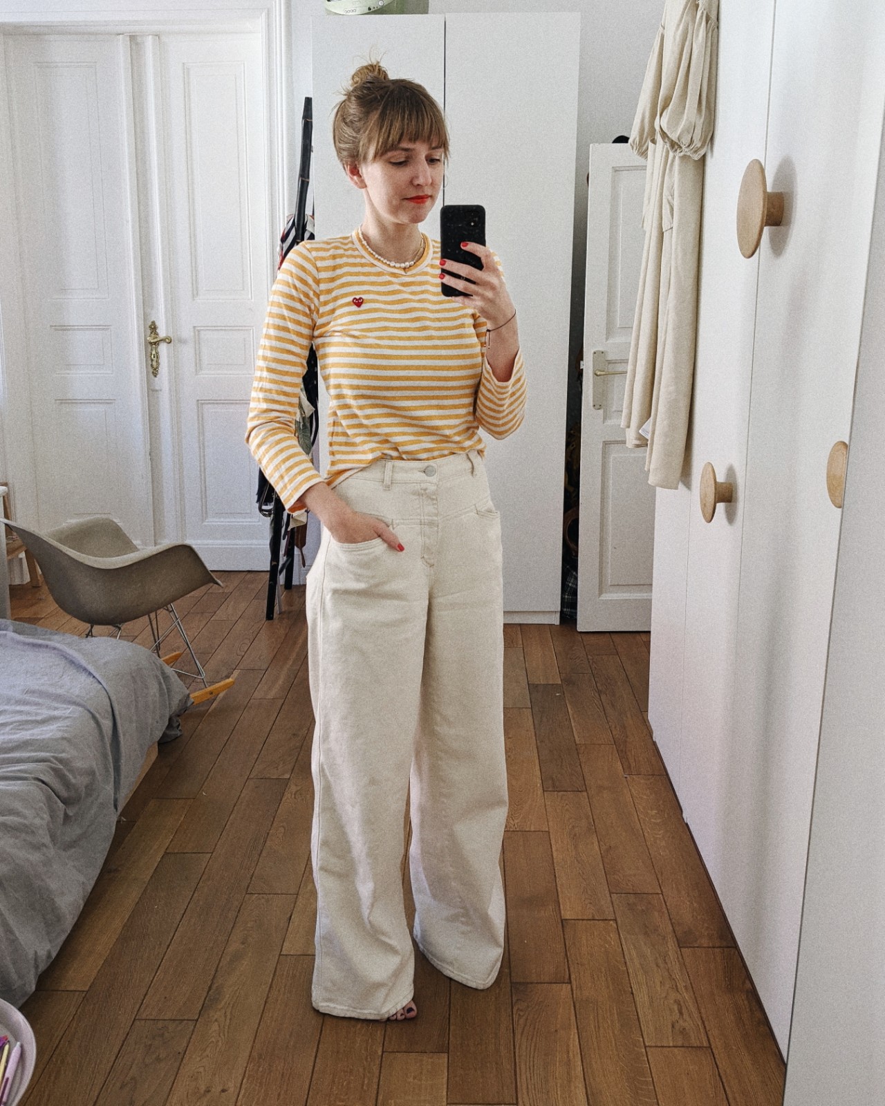 Ich habe mir diese Woche einen Spaß aus unseren Wochenoutfit-Bildern gemacht und meine Schlafanzüge mit Kleidung kombiniert, die ich im Alltag gerne trage. Ein Unterhemd oder Schlafoberteil mit Jeans und ein Nachthemd mit Blazer und Sneaker. Ich finde, das spiegelt auch ganz gut meine aktuelle Lebenssituation wieder. Halb am Arbeiten und Freunde virtuell Treffen und halb irre im Pyjama zuhause. Deswegen suche ich mir gerade immer wieder kurze Auszeiten, in denen ich spaßige Dinge tue. Ich werfe kurz alle Sorgen über Bord. Das tut richtig gut! Gestern habe ich mir über eine Stunde lustige Tiervideos angeschaut und richtig laut gelacht. Haha! Aber kurz zurück den Outfits. Ich war mir gar nicht dem Potenzial meiner Schlafanzüge bewusst und freue mich, sobald die Lage sich geändert und das Wetter etwas wärmer ist, sie draußen zu tragen.