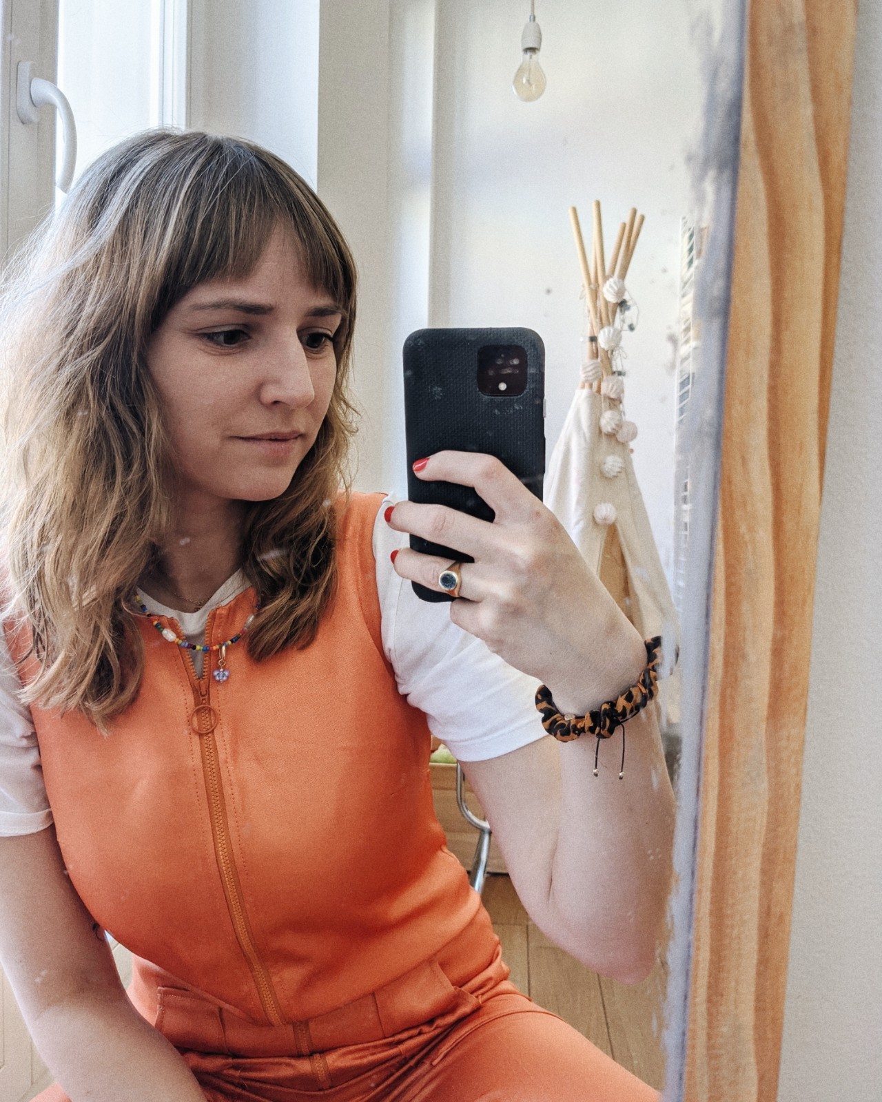Ich glaube, sie sind an einigen Stellen am Hinterkopf noch ein bisschen braun, weil ich natürlich nicht alle Haare gleichmäßig erwischt habe, aber irgendwie ist mir das gerade auch ein bisschen egal (was vielleicht auch an der Reserve-Packung im Schrank liegen mag). Ohnehin befinde ich mich derzeit in einem merkwürdigen Schwebezustand, in dem ich mir witzige Memes auf Instagram oder Tiervideos auf YouTube anschaue, um mal wieder so richtig lachen zu können, bevor ich dann abends in unangenehme Panikattacken schlittere. In diesem Moment aber fühle ich mich sogar merkwürdig okay, warum weiß, ich gar nicht so genau — vielleicht liegt es an Robyn oder doch an der Sonne, ich hoffe jedenfalls, dass dieser Zustand ein wenig länger anhält, denn so lässt es sich ein kleines bisschen besser aushalten.