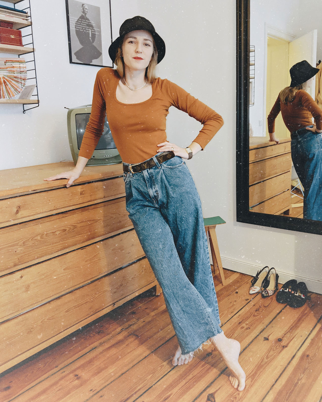 Vor vielen Jahren besaß ich schon mal eine Jeans aus dem Hause Edited und zählte sie zu meinen absoluten Lieblingsmodellen. Dummerweise trug ich sie so oft, dass das Material irgendwann in die Knie ging und ich Adieu sagen musste. Nun wusste ich jedenfalls um Editeds wunderbare Jeansschnitte und pickte mir zuletzt ein Modell, das mich beim Anziehen gedanklich sofort in die 80er Jahre manövriert. Fehlt eigentlich nur noch George Michael im Ohr und schon schnipst der Finger, während meine Fußspitzen abwechseln rechts und links im Takt auftreten. Große Liebe!