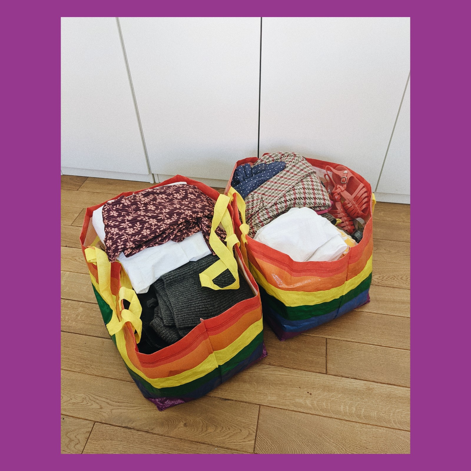 2. Sorge für Platz, um deine Kleidung auszubreiten und hab‘ direkt ein paar Kleidersäcke/Kartons griffbereit, um deine Kleidungsstücke zu sortieren.