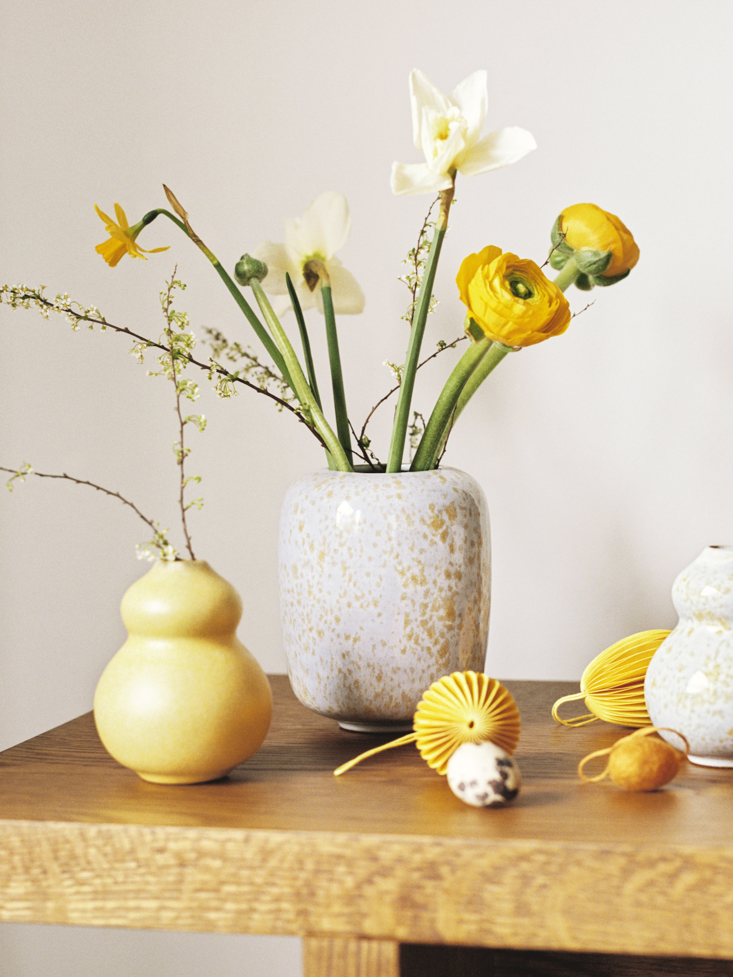 Für frischen Wind in unseren vier Wänden sorgt jetzt die neue Home-Kollektion von Arket: Zwischen sonnengelben Akzenten bringen knallige Farben und pastellene Nuancen Abwechslung in die Wohnung, während kleine Oster-Ornamente die nötige Portion Kitsch bereithalten. Die Farben ziehen sich dabei gleichermaßen durch Heimtextilien wie Decken und Kissenbezüge, als auch Dekoobjekte, Vasen sowie Geschirr. Zu den Highlights zählen etwa die Fisch-Schale sowie die gelbe Vase in abstrakter Form. Die gesamte Kollektion ist ab sofort bei Arket erhältlich.