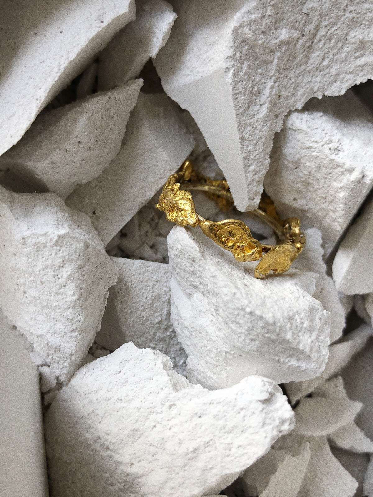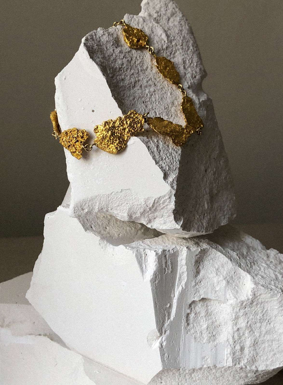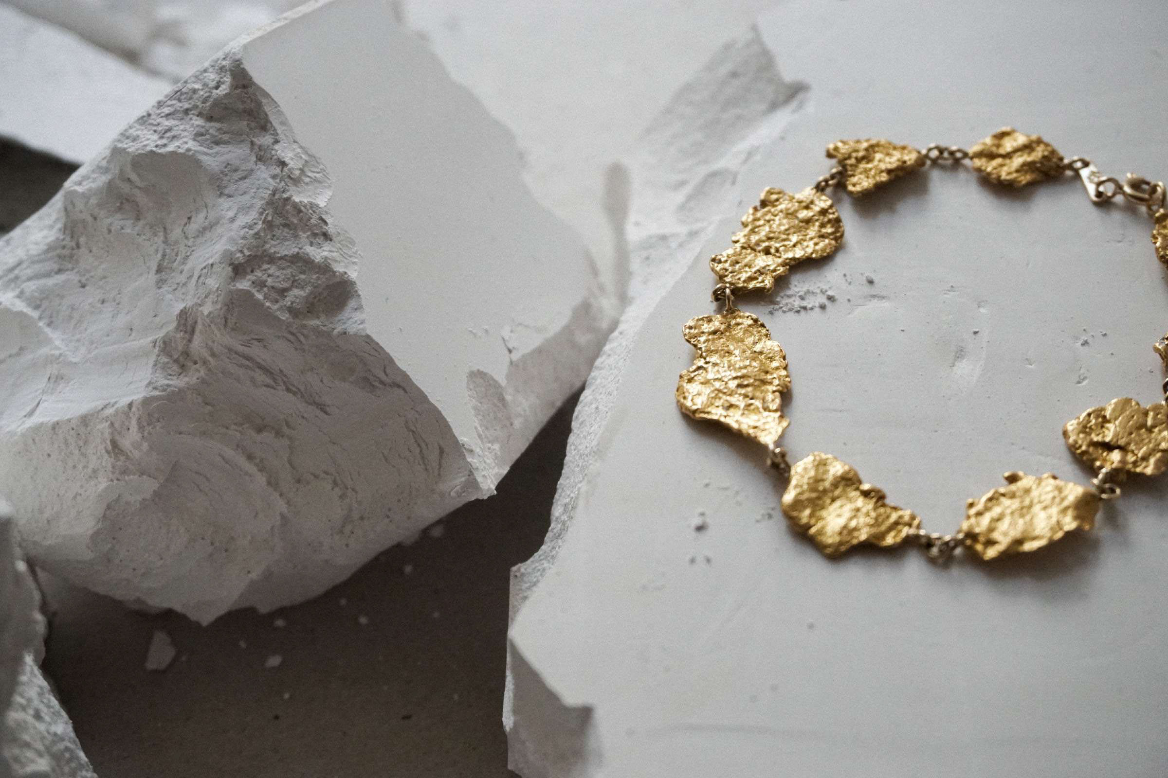 Inspiriert von einem kleinen Goldnugget-Anhänger, den ihre Mutter ihr einst schenkte, gründete Gisa Golpira im Jahr 2014 ihr eigenes Schmucklabel. Seither fertigt sie einzigartige Stücke, die aus natürlich geformten Goldnuggets bestehen, an, und präsentiert mit „Raw Romance“ jetzt ihre neuesten Kreationen: Im Vordergrund stehen neben Ringen und Ohrringen so auch Ketten, die allesamt von feinen Nuggets durchzogen sind. Die Kollektion ist ab sofort bei Golpira erhältlich.