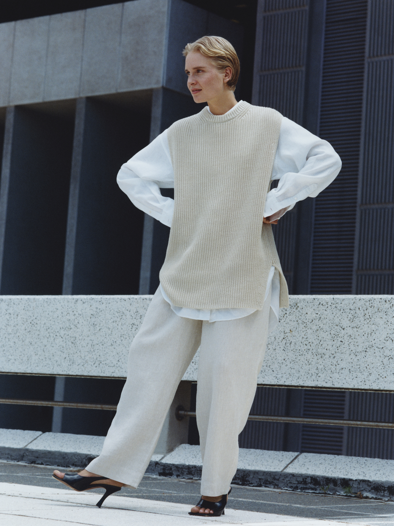 Im Mittelpunkt der diesjährigen Sommerkollektion von Arket steht die leichte, strapazierfähige Faser Leinen, die nicht nur für ein angenehmes Tragegefühl sorgt, sondern auch eine ganze Reihe an Vorteilen für die Umwelt bietet: So kann die schnell nachwachsende Flachspflanze, aus der Leinen gewonnen wird, auf unebenen Grund angebaut werden, der für die Lebensmittelproduktion als ungeeignet gilt. Noch dazu wird sie in Europa angebaut, muss nicht bewässert werden und benötigt für ihren Anbau nur wenige Agrochemikalien. Innerhalb der Arket „The Linen“ Kollektion präsentiert sich das Material in Form von starken Silhouetten, wie etwa weit geschnittenen Hemden, fließenden Hosen und klassischem Tailoring. Eine Besonderheit: Viele Kleidungsstücke werden nicht gefärbt, sondern in ihren natürlichen Farben belassen, um die Unregelmäßigkeiten des Garns hervorzuheben. Die gesamte Kollektion ist ab sofort bei Arket erhältlich.