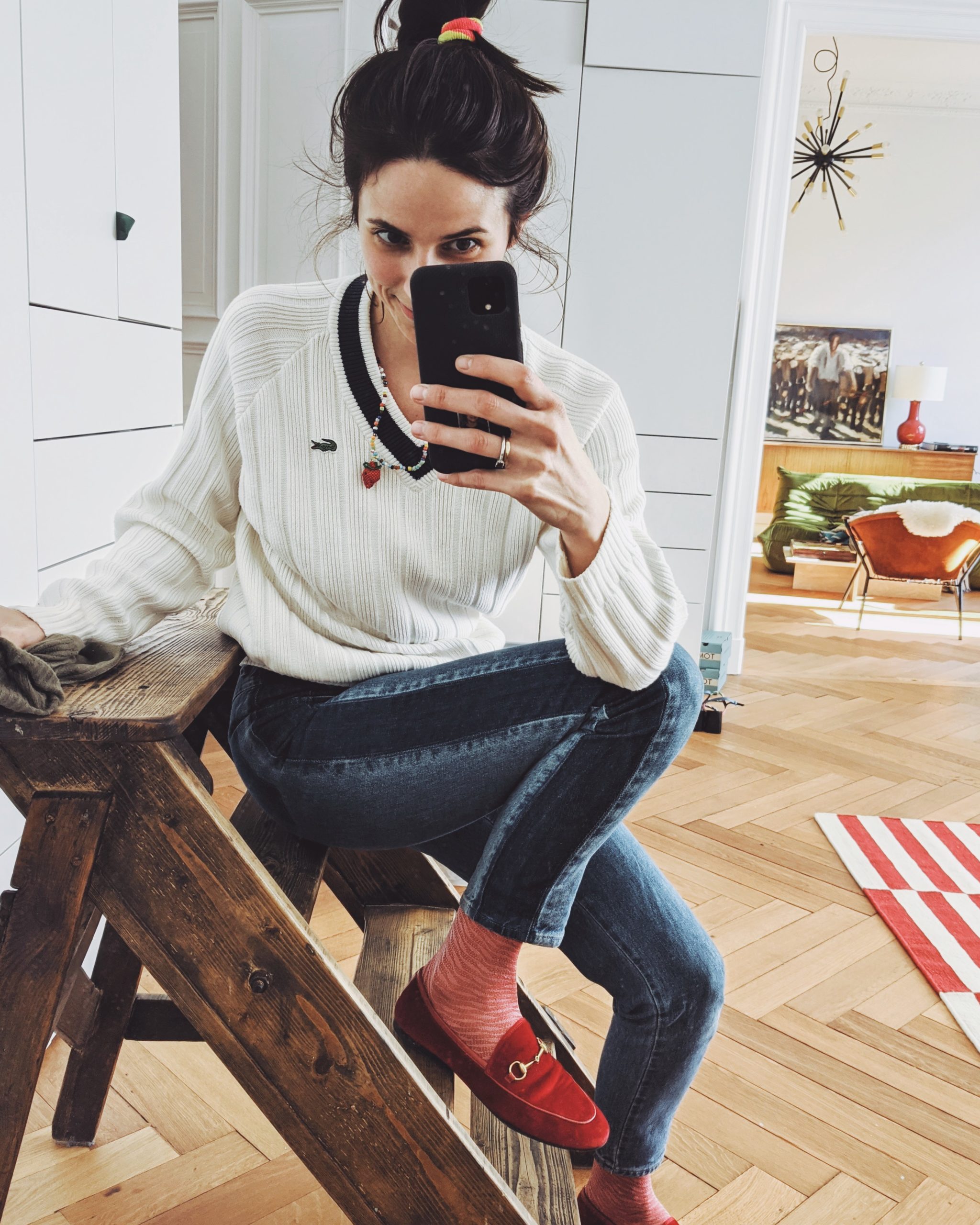 Pullover: Lacoste Live!, Jeans: Closed, Loafer: Gucci, Socken: Hysteria