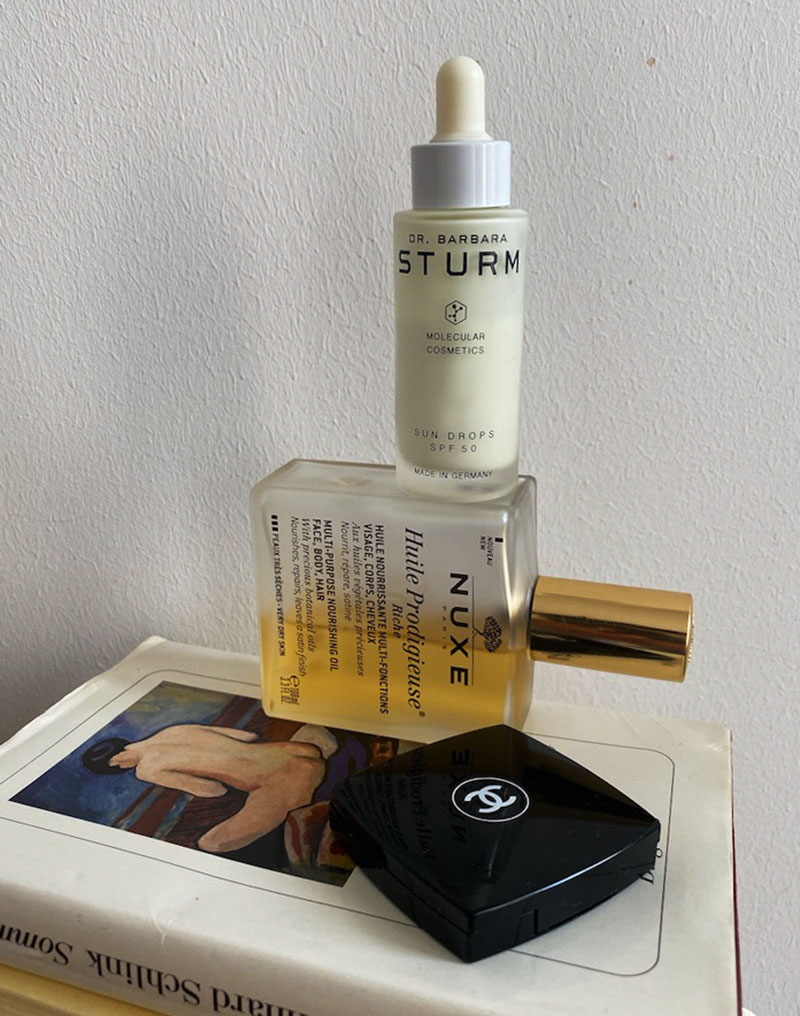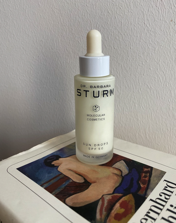 Ich würde das Haus nie ohne UV-Schutz im Gesicht verlassen. Ich glaube, das ist ein Tick von Beauty-Redakteur*innen. Es gehört quasi zum guten Ton, seine Haut stets vor den UVA-/UVB-Strahlen zu schützen. Bloß keine Falte riskieren, haha! Das Problem bei mir ist, dass ich eine sehr sensible Haut habe und bei Sonnencremes schnell zu Unreinheiten neige. Die Dr. Barbara Sturm Sun Drops von Dr. Barbara Sturm sind wie ein Luftikus mit Lichtschutzfaktor 50. Ohne die Poren zu verstopfen, oder sich wie ein Film auf die Haut zu legen, gebe ich jeden Tag ein paar Tropfen in meine Tagespflege (Natürlich nur, wenn sie nicht schon einen LSF hat).