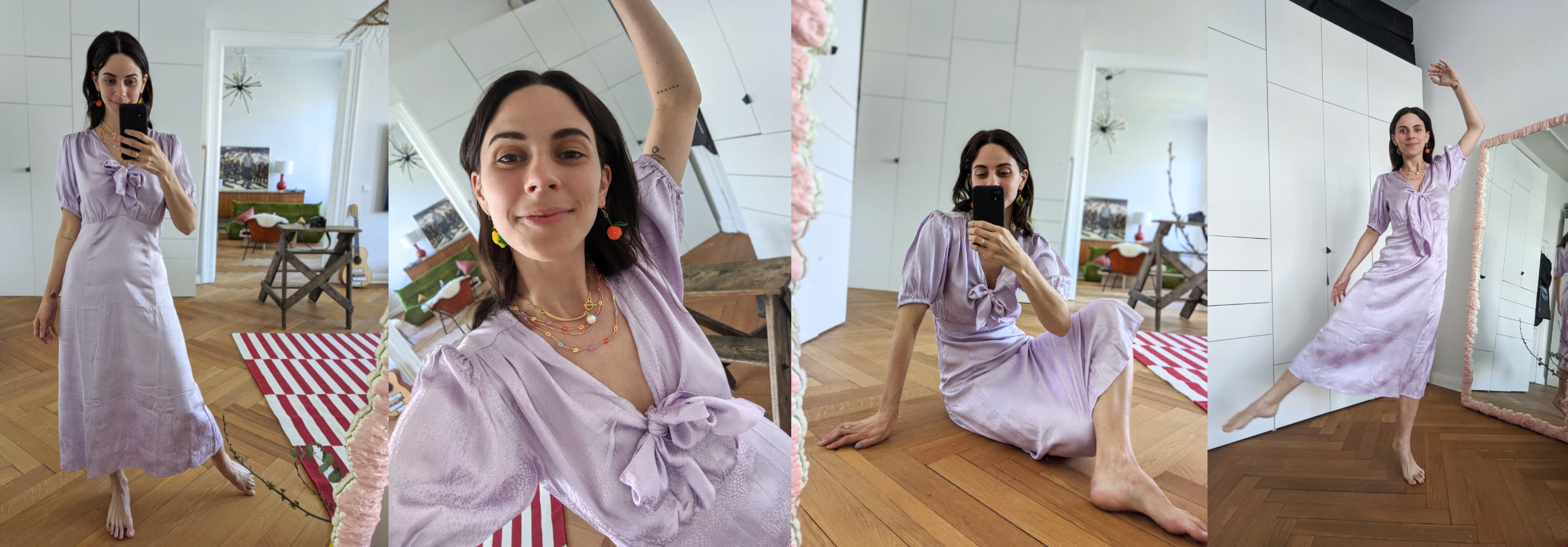 Ob ich mir nicht etwas Banane dabei vorkommen würde, mich in diesem Smarties-farbenen Kleid auf dem Boden herumzuräkeln, fragte mein erwachsenen Ich sich heute Morgen bei der Anprobe meiner Favoriten aus der aktuellen „Occasion Wear“ Kollektion von Edited. Ja, schon, aber Schwamm drüber. Was mich nämlich viel verdutzter stimme: Flieder, mit dieser Farbe konnte man mich für gewöhnlich stets bis hinter den Horizont jagen.