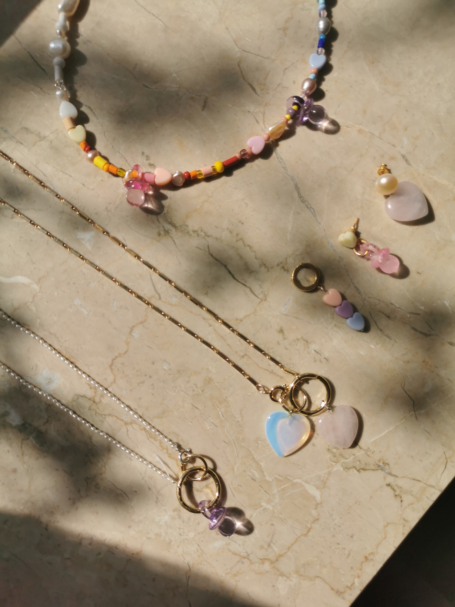 Herrlich verspielt und mit einem Hauch von Kitsch präsentieren sich die fünf neuen Designs des Berliner Schmucklabels Wald Berlin. Hinter dem Namen „The Baby Candy Man“ stecken so kleine Charms in pastelligen Nuancen, die sich an goldfarbenen und kunterbunten Ketten und Ohrringen wiederfinden. Dabei treten sie sowohl als Schnuller, die aus den 90er Jahren bekannt sind, als auch in Herzchenform auf und sorgen dank Rosa, Pfirsich und Hellblau für jede Menge Lust auf Frühling.