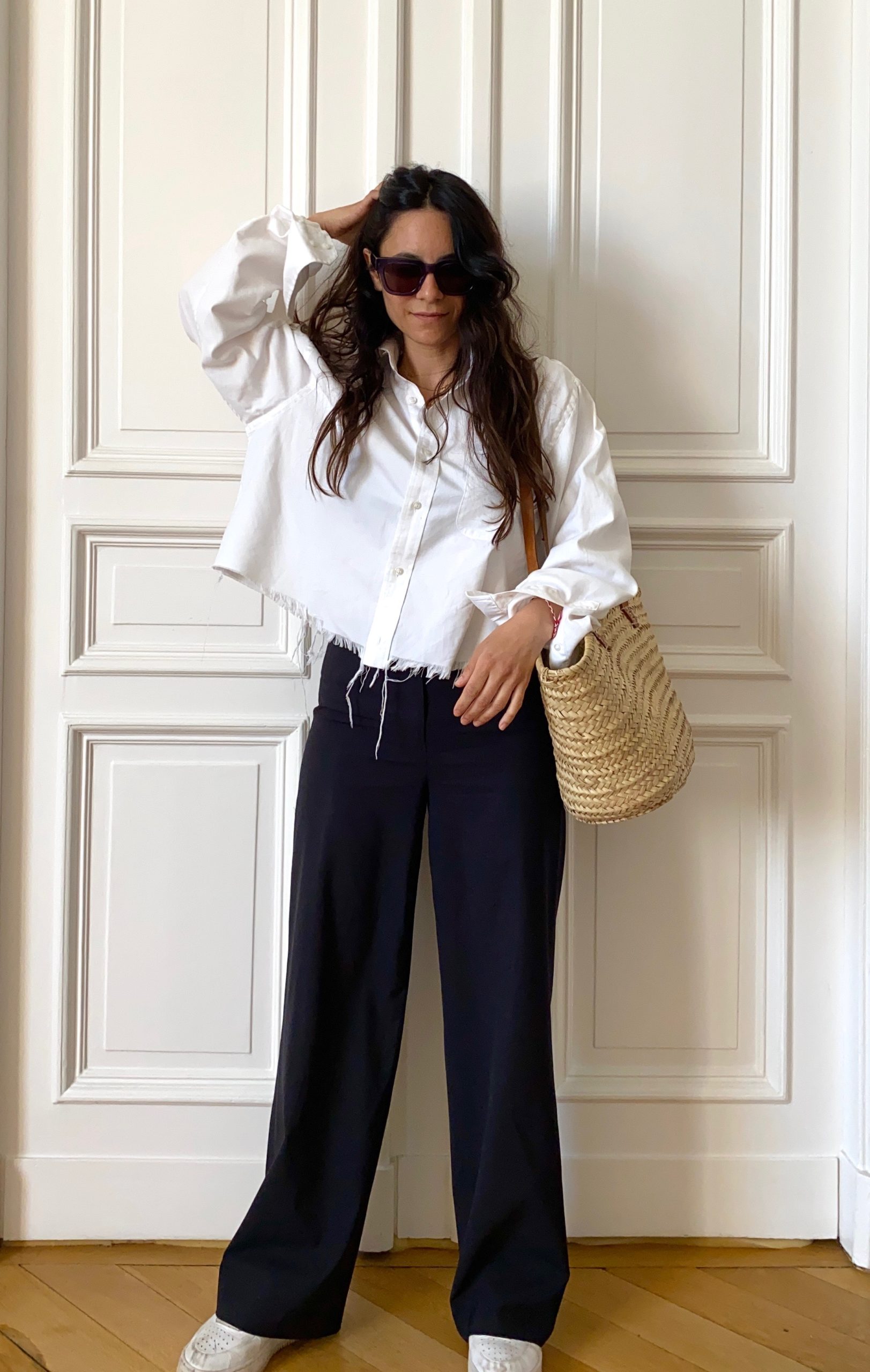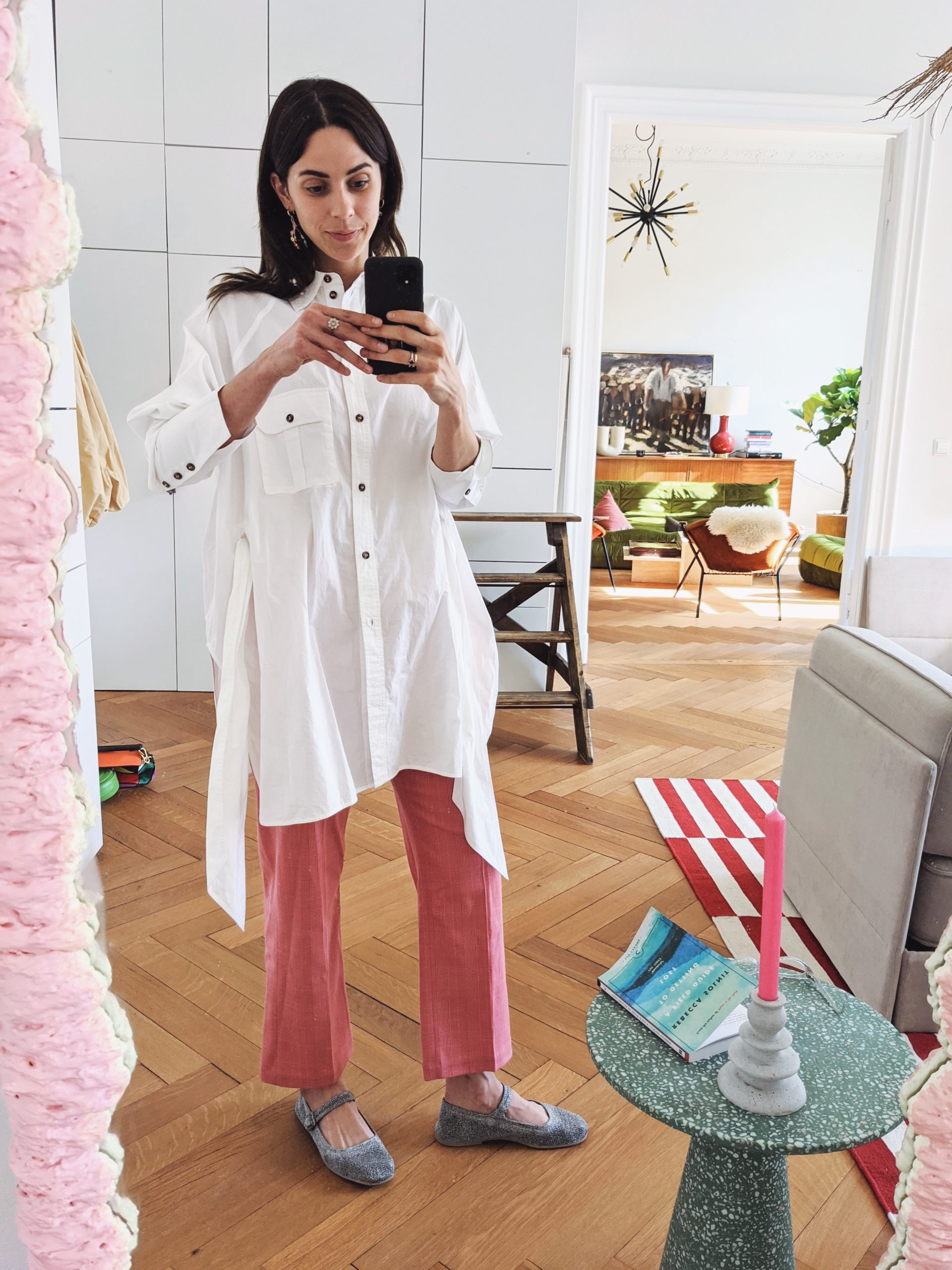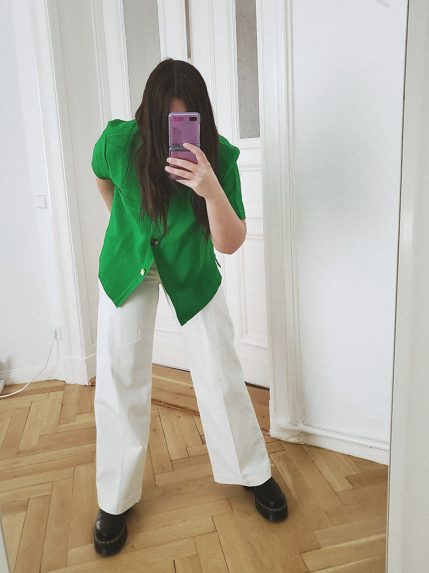 Bluse: Ganni, Hose: & other stories (ähnliche hier), Schuhe: Alexa Chung