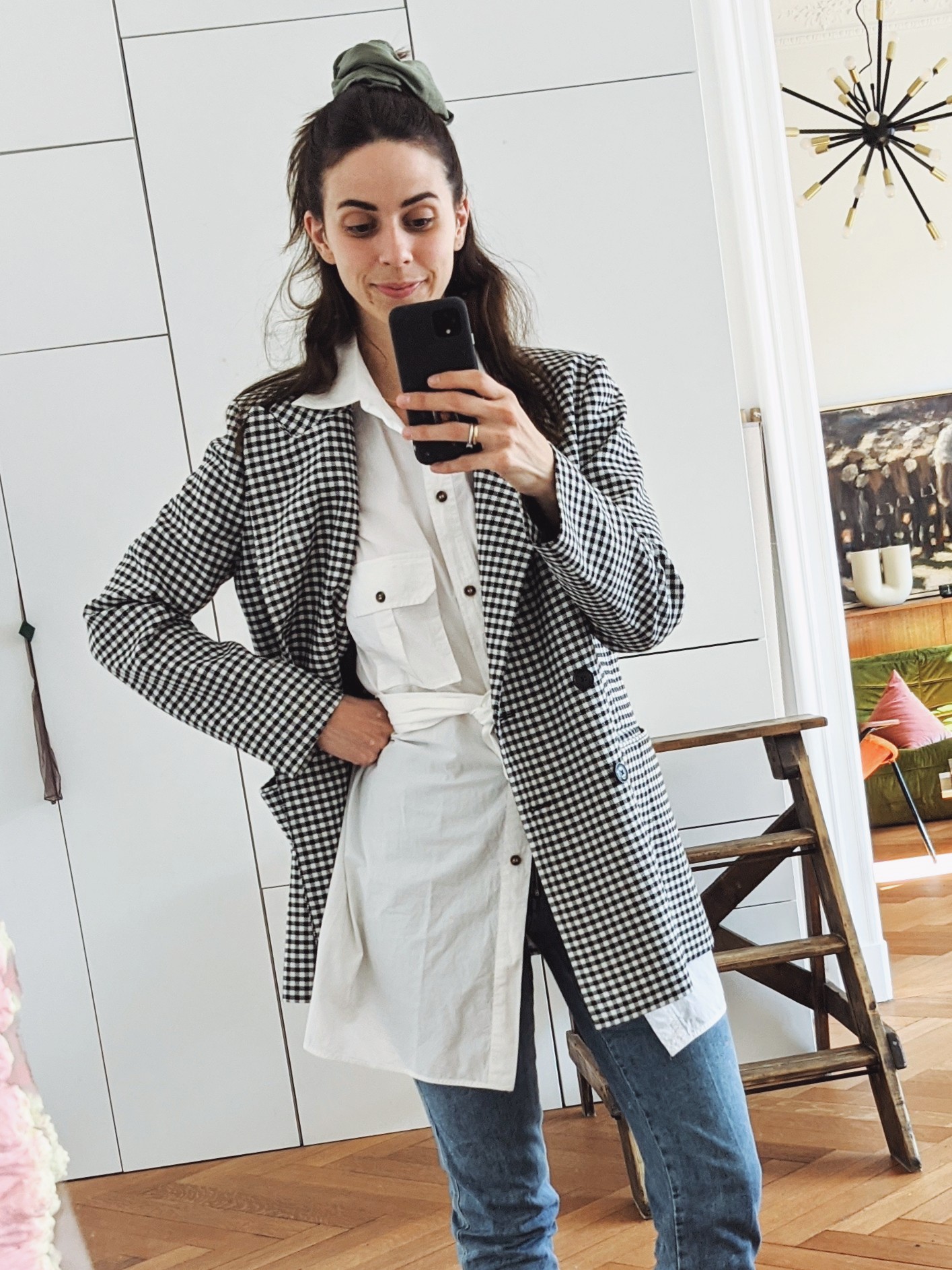 Haargummi: ebba x Jane Wayne, Blazer: Closed, Bluse: Ganni, Jeans: Closed Pedal Pusher
