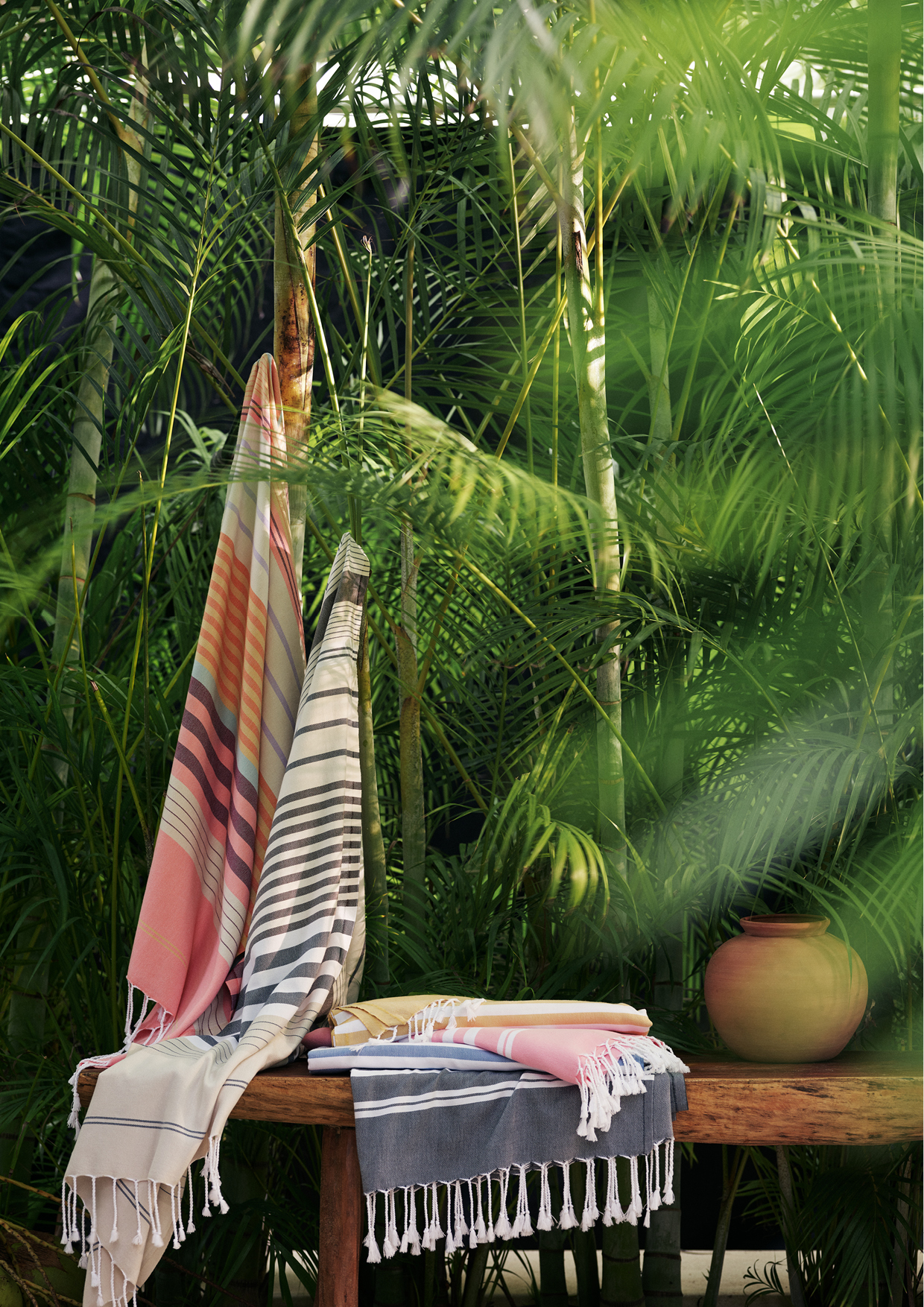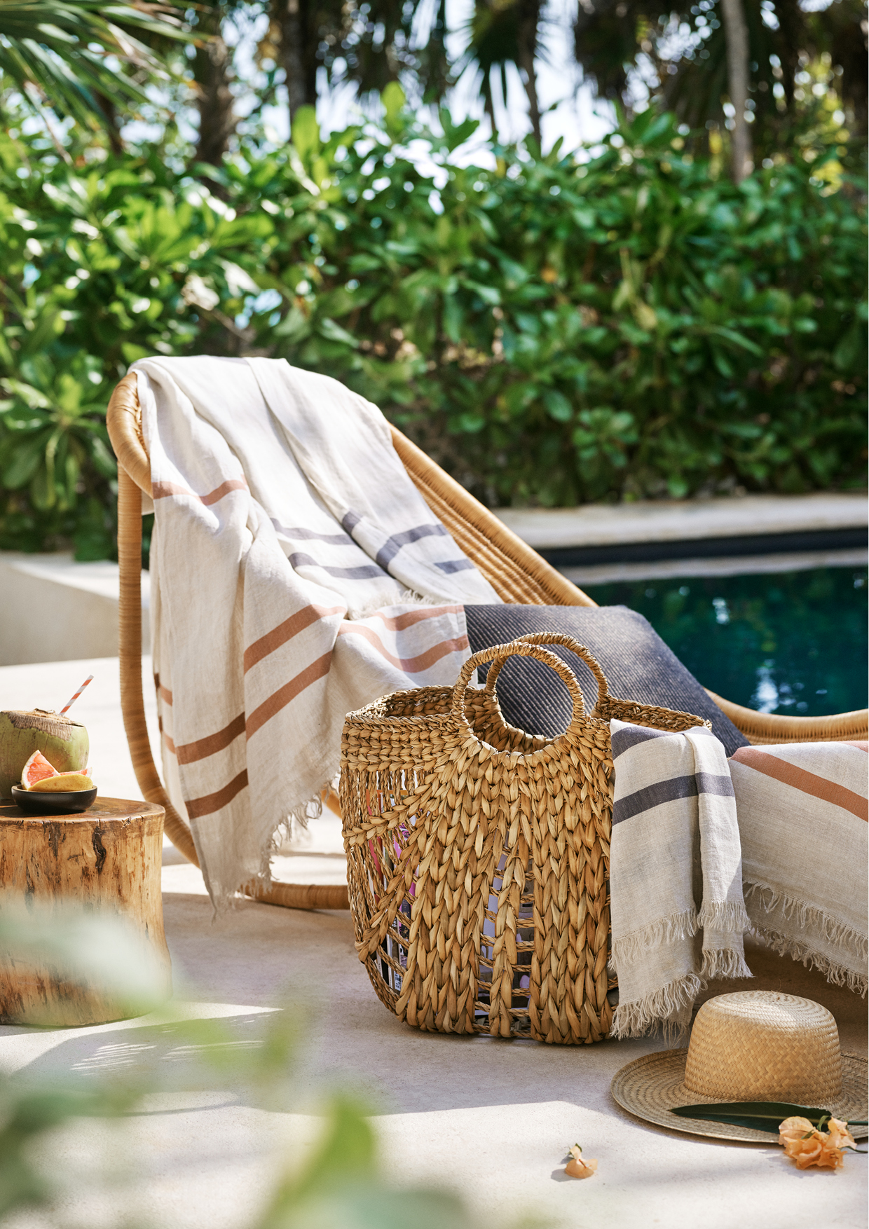 Für ein bisschen mehr Sommer in den eigenen vier Wänden sorgt jetzt die neueste Kollektion von H&M Home: Inspiriert von den Farben des Meeres, Strandfundstücken und paradiesischen Inseln präsentiert sie sich in hellen, sandfarbnen Tönen, Naturtextilien wie Rattan und Jute sowie satten Türkis- und Blaunuancen. Neben Kissenhüllen zählen etwa Schalen und Körbe sowie Keramikstücke und Vasen zu den Herzstücken der Kollektion. Die gesamte Linie findet ihr ab sofort bei H&M Home. Einen Vorgeschmack haben wir bereits hier für euch: