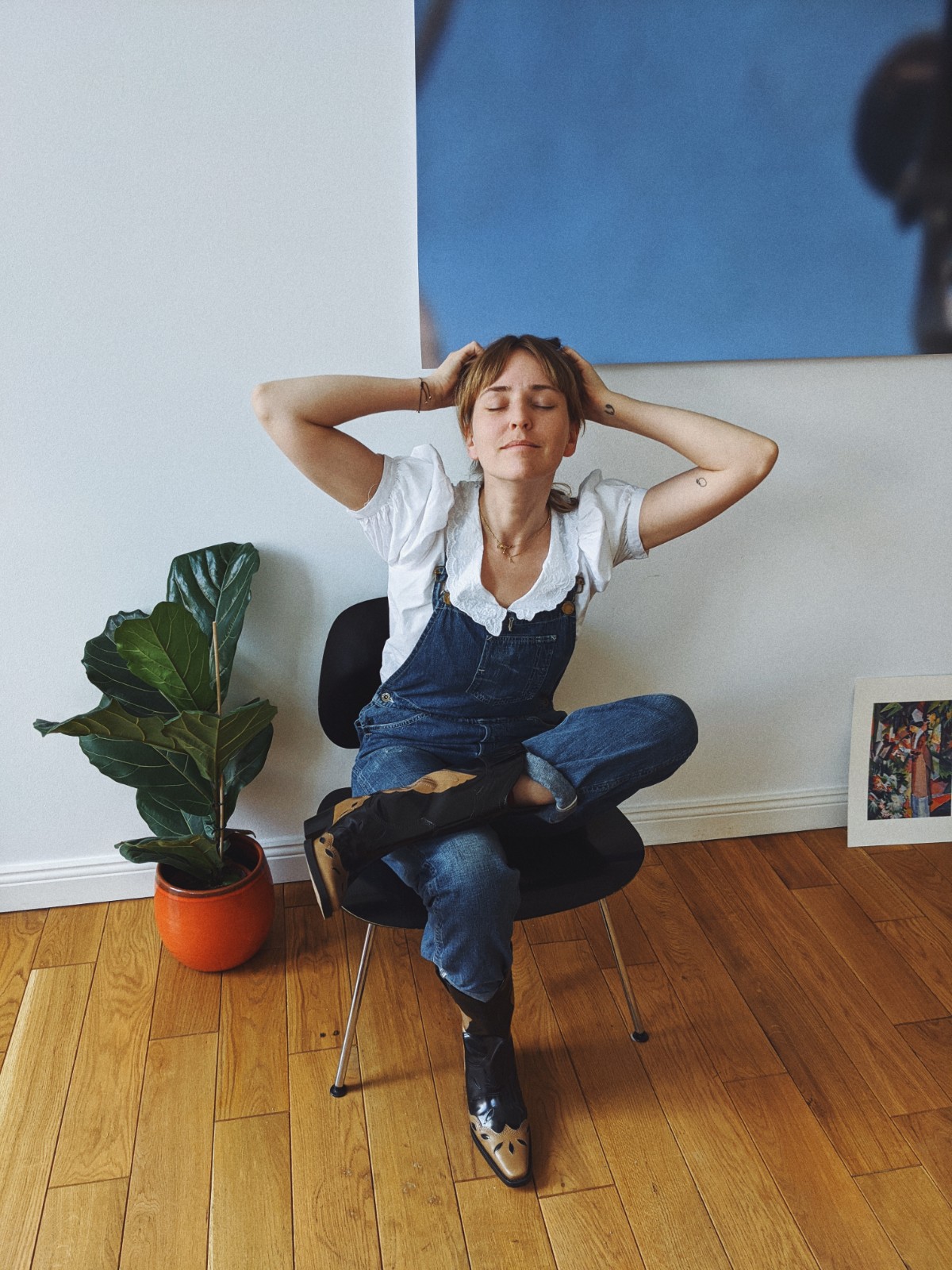 Bluse: No Name (ähnlich hier), Latzhose: Levi’s Vintage (alt), Stiefel: Ganni