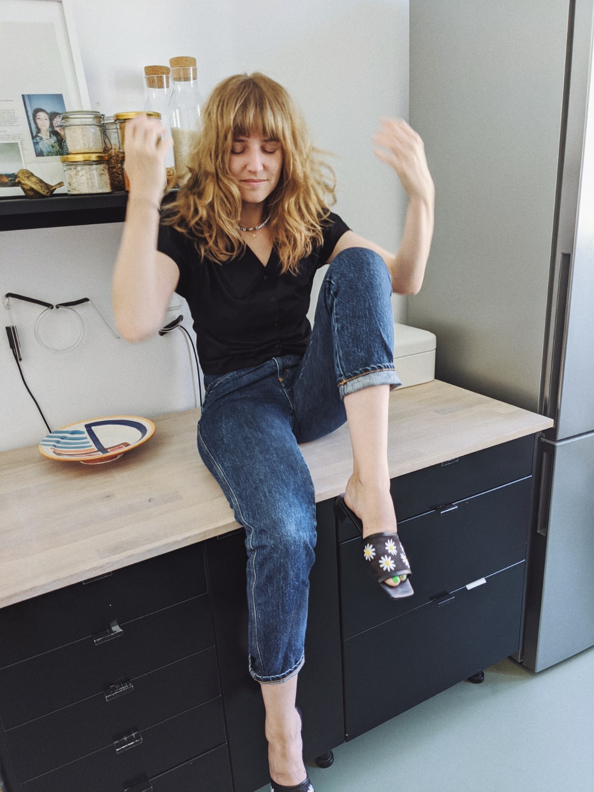 Shirt: Monki, Hose: Closed, Schlappen: Monki, Kette: Wald Berlin
