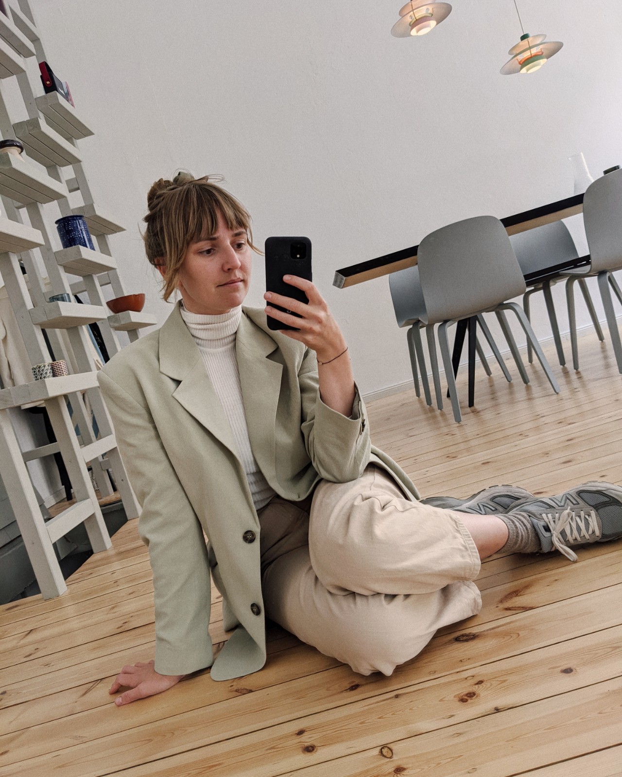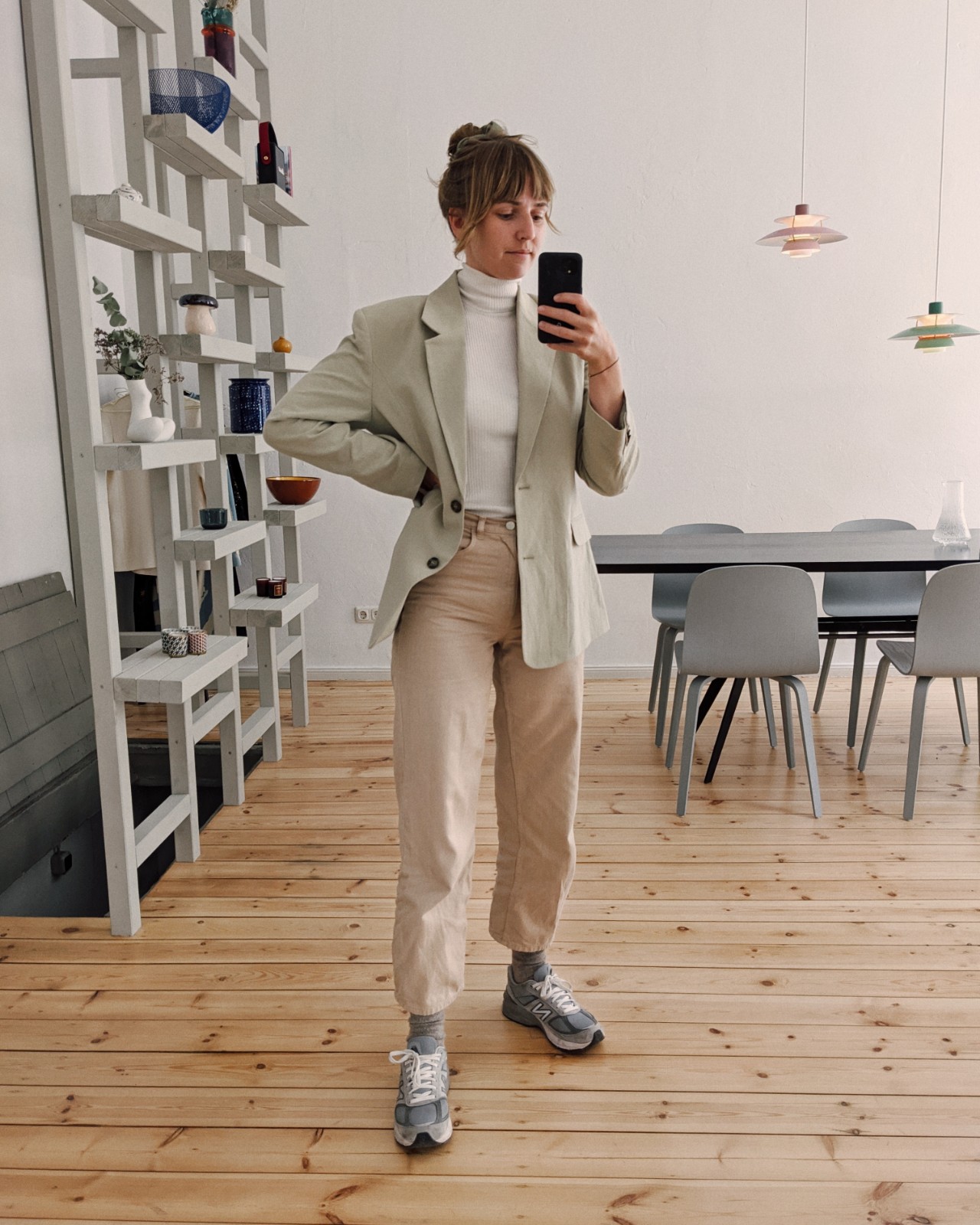 Blazer: & Other Stories, Rollkragen: Wolford, Jeans: & Other Stories, Socken: COS, Schuhe: New Balance