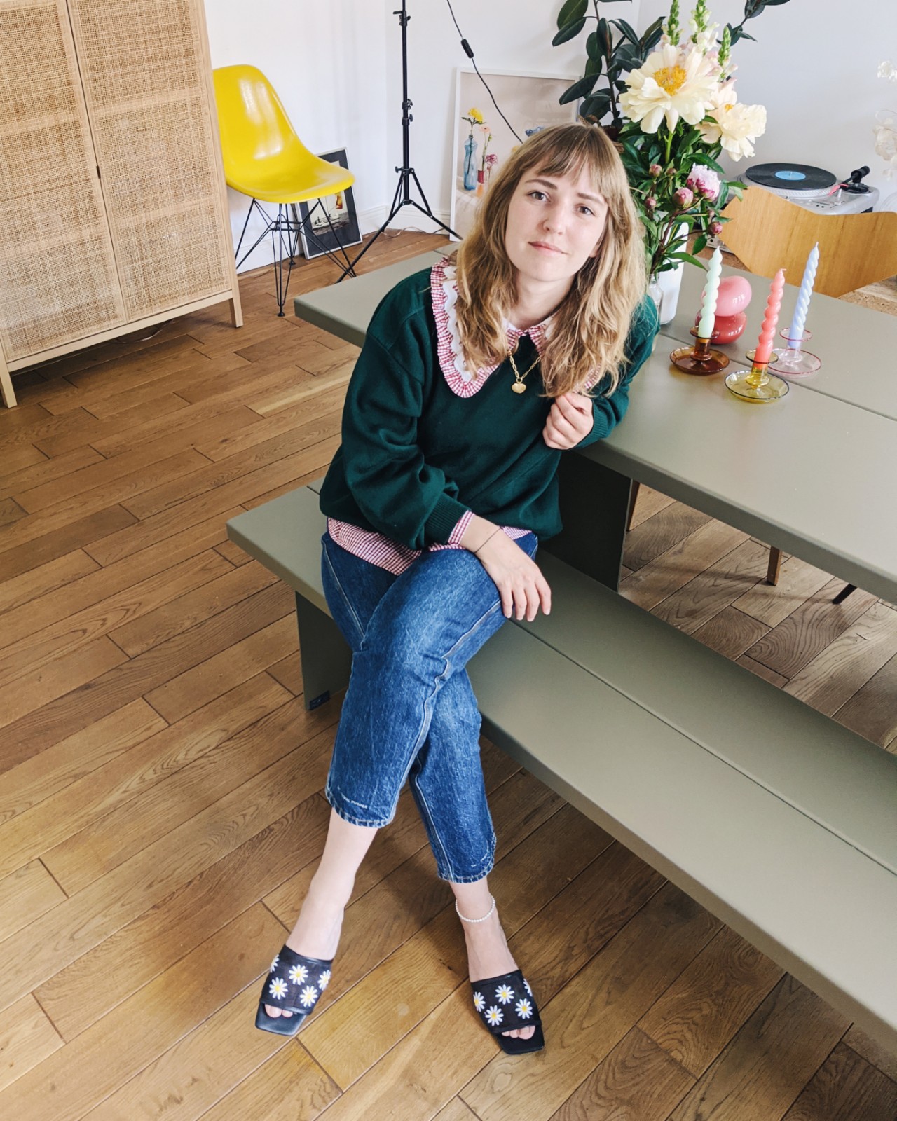 Bluse: La Veste, Pulli: Von Papa, Kette: Closed x Maximova, Jeans: Closed, Fußkettchen: Edited x Margova, Schuhe: MONKI
