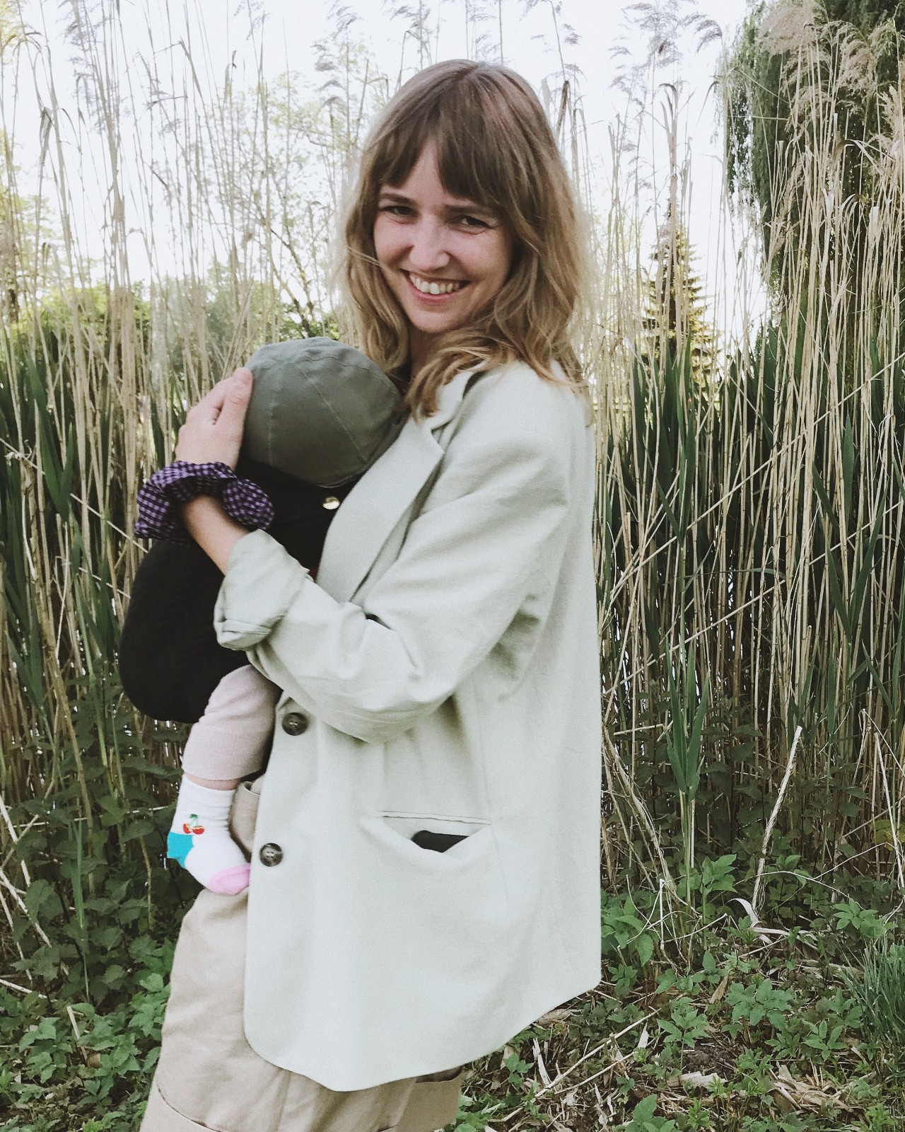 Blazer: & Other Stories, Shorts: Acne Studios (alt) // Otto: Mütze von Grey Label, Socken: Happy Socks, Trage: Artipoppe