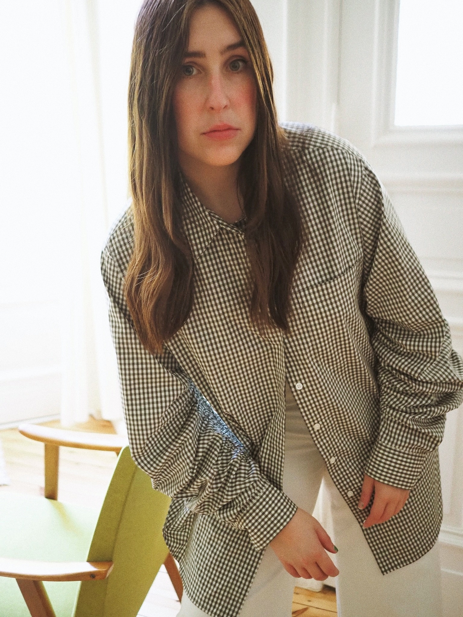 Hemd: 3.1 Phillip Lim (alt), Jeans: Baum und Pferdgarten