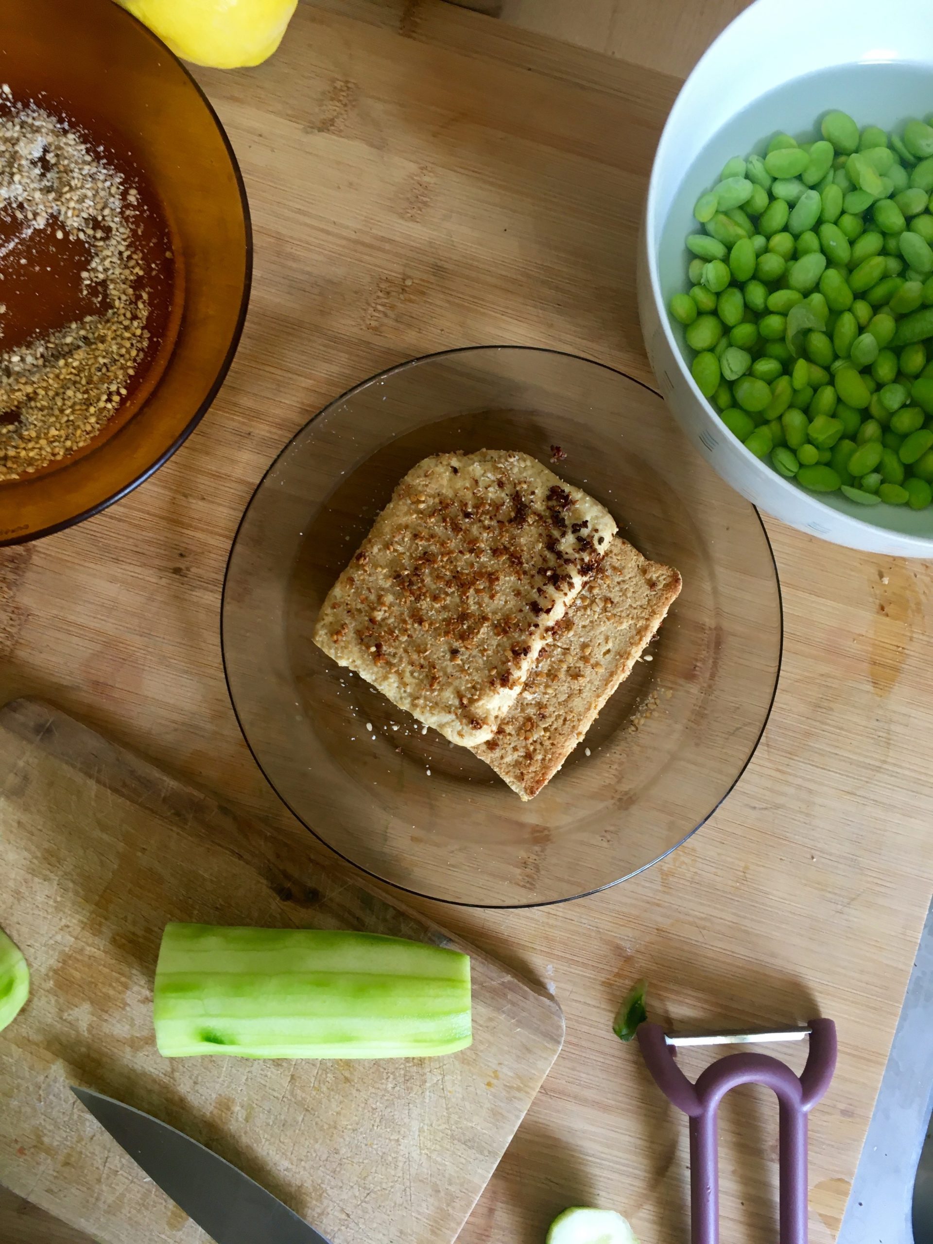Edamame-Gurken Bowl mit Sesam Tofu