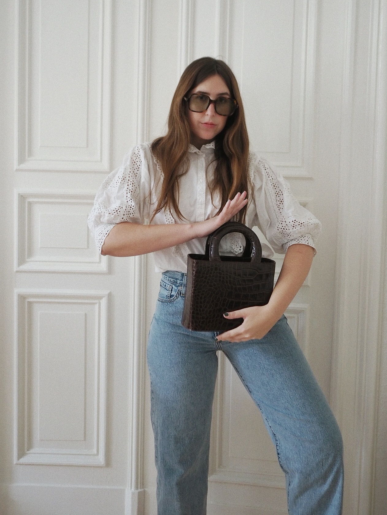Nachdem ich meine Teenie-Phase, in der ich ausschließlich weite, zerrissene Jeans, Bandshirts und gestreifte Armstulpen trug, hinter mir ließ, gierte ich nach Minimalismus, Erwachsensein und modischer Gelassenheit. Grund waren natürlich nicht bloß mein voranschreitendes Alter und damit die Emanzipation meines Emo-Ichs, sondern auch meine neueste Entdeckung, die sich mir in Form von Jane Birkin offenbarte. Ganz plötzlich war ich verliebt in blaue Jeans mit leichtem Schlag, gestreifte T-Shirts und: weiße Blusen und Hemden. Letztere nämlich, so guckte ich es mir schnell ab, ließen sich wunderbar lässig tragen, — geknotet, locker in die Hose gesteckt oder in offener Variante als Jackenersatz — während Blusen samt Lochstickerei und dezenten Rüschenbahnen selbst meiner Garderobe einen gleichermaßen verspielten als auch sommerlichen Flair entlockten. Was folgte, war eine jahrelange Liebschaft, die bis heute anhält, obwohl ich stets unterschiedlichste modische Stile durchlief — das weiße Hemd, die weiße Bluse aber blieben. Lediglich ihr Antlitz variierte. In der Vergangenheit trug ich so nicht nur klassische Silhouetten und Ausführungen, sondern auch Modelle aus Organza, Blusen mit opulentem Kragen, übertriebenen Puffärmeln und Spitzenkragen.