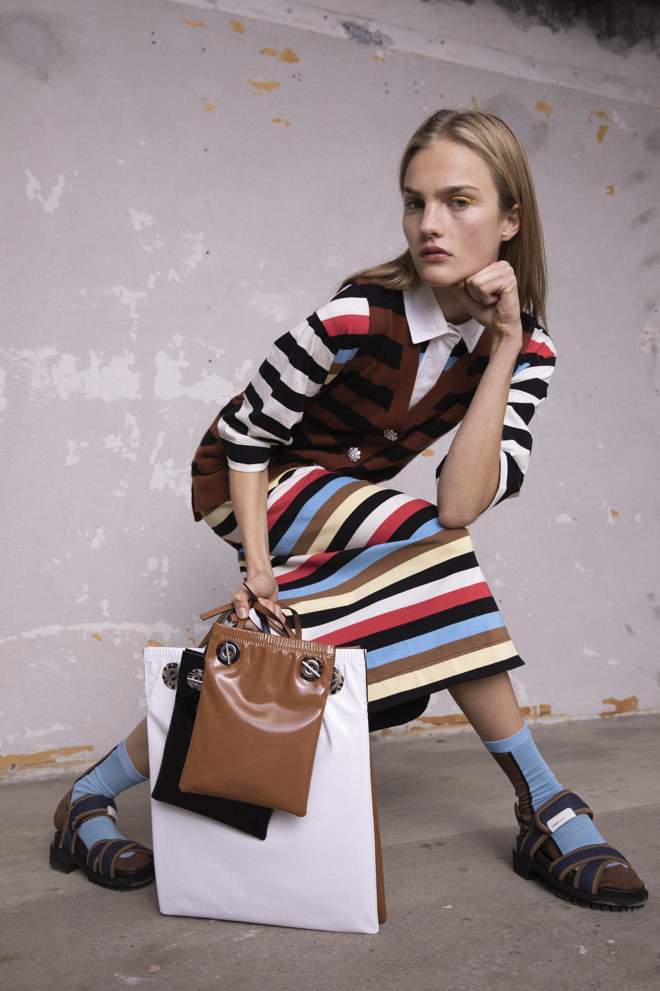 Prairie Kleider, florale Muster und üppige Kragen — die Pre-Fall Kollektion von Ganni zeigt sich gewohnt verspielt, experimentiert dabei mit unterschiedlichen Silhouetten, Prints und Farben, bricht modische Grenzen auf und nimmt sich dabei selbst nicht zu ernst. Inspiriert von der Freiheit und der Energie des Sommers kreierte Ditte Reffstrup, Kreativdirektorin von Ganni, eine Kollektion, die aufregend und entspannt zugleich ist. Neben wallenden Maxikleidern und Hosen mit weitem Bein zählen lässige Rugby-Hemdkleider, Strickwesten und übergroße Jacken zur Kollektion. Alle Stücke sind ab dem 17. Juni bei Ganni erhältlich.