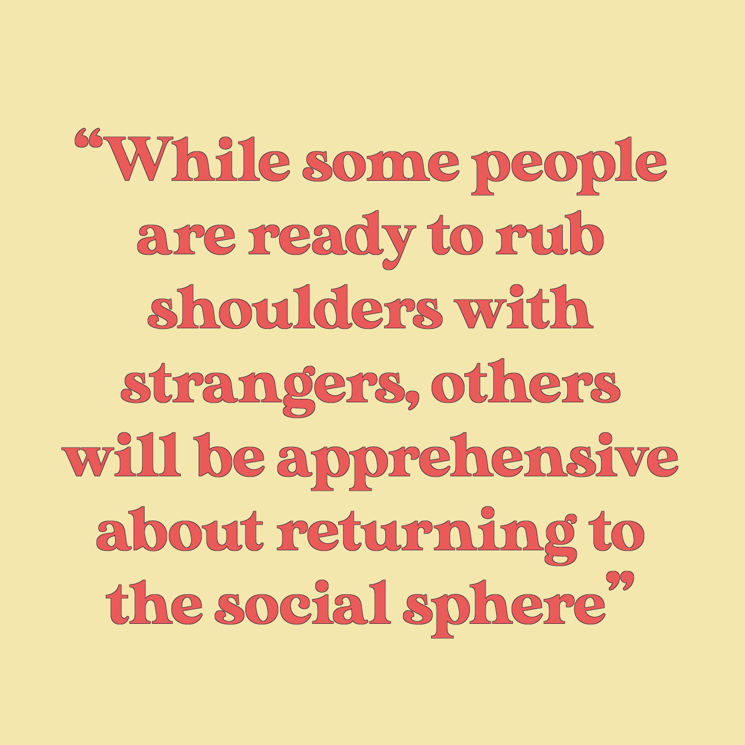 „While some people are ready to rub shoulders with strangers, others will be apprehensive about returning to the social sphere, in part because without a vaccine, leaving our homes will come with a real risk of infection. But anxieties about resuming public life have also been magnified by our months indoors, with the lack of exposure to people and places only intensifying our fears about the outside world.”