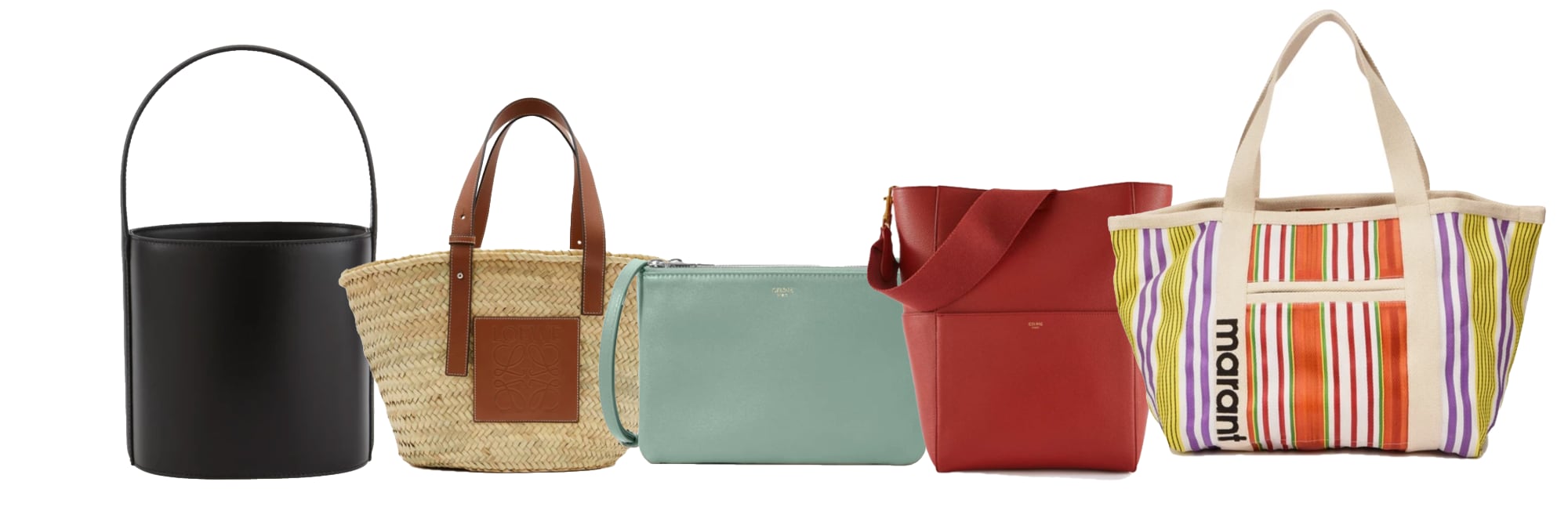 Staud Bisset Bucket Bag, Loewe Basket Bag, Céline Trio Bag, Céline Sangle Bag,