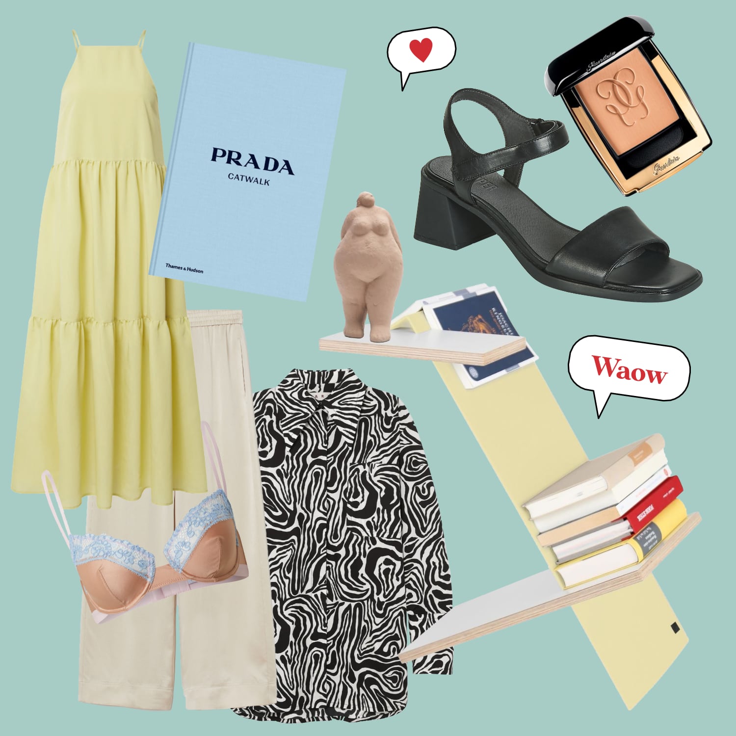 Kommt auf die Wunschliste, beides. Genau wie neue Unterwäsche (ein leidiges Thema), gemütliche Absatz-Sandalen (auf jeden Fall von Camper, weil’s meiner Erfahrung nach bequemer kaum geht), ein psychedelisches Hemd (70% off, Marni), eine luftige Hose, neues Puder (jenes, auf das meine Mama schwört) und außerdem das Prada Catwalk Buch, das ich jeden Morgen im Zoom-Meeting bei Julia im Hintergrund herumstehen sehen, weil Miuccia mir nach wie vor eine der liebsten Modemachenden aller Zeiten ist: