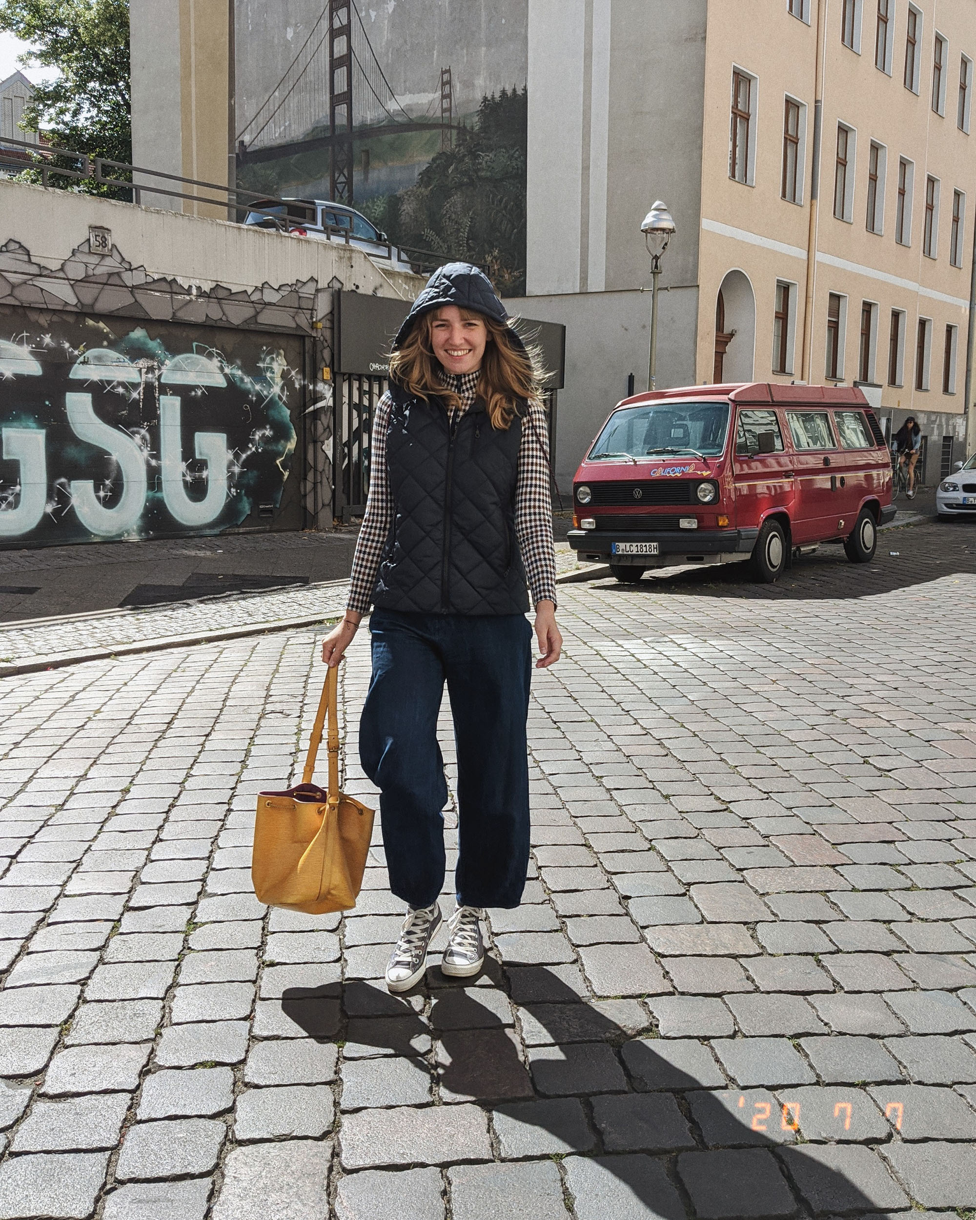 Shirt: Baum + Pferdgarten (älter), Weste: Baum + Pferdgarten (in beige hier), Jeans: Kings of Indigo (älter, ähnlich hier), Schuhe: Chucks, Tasche: Louis Vuitton via Vestiaire Collective