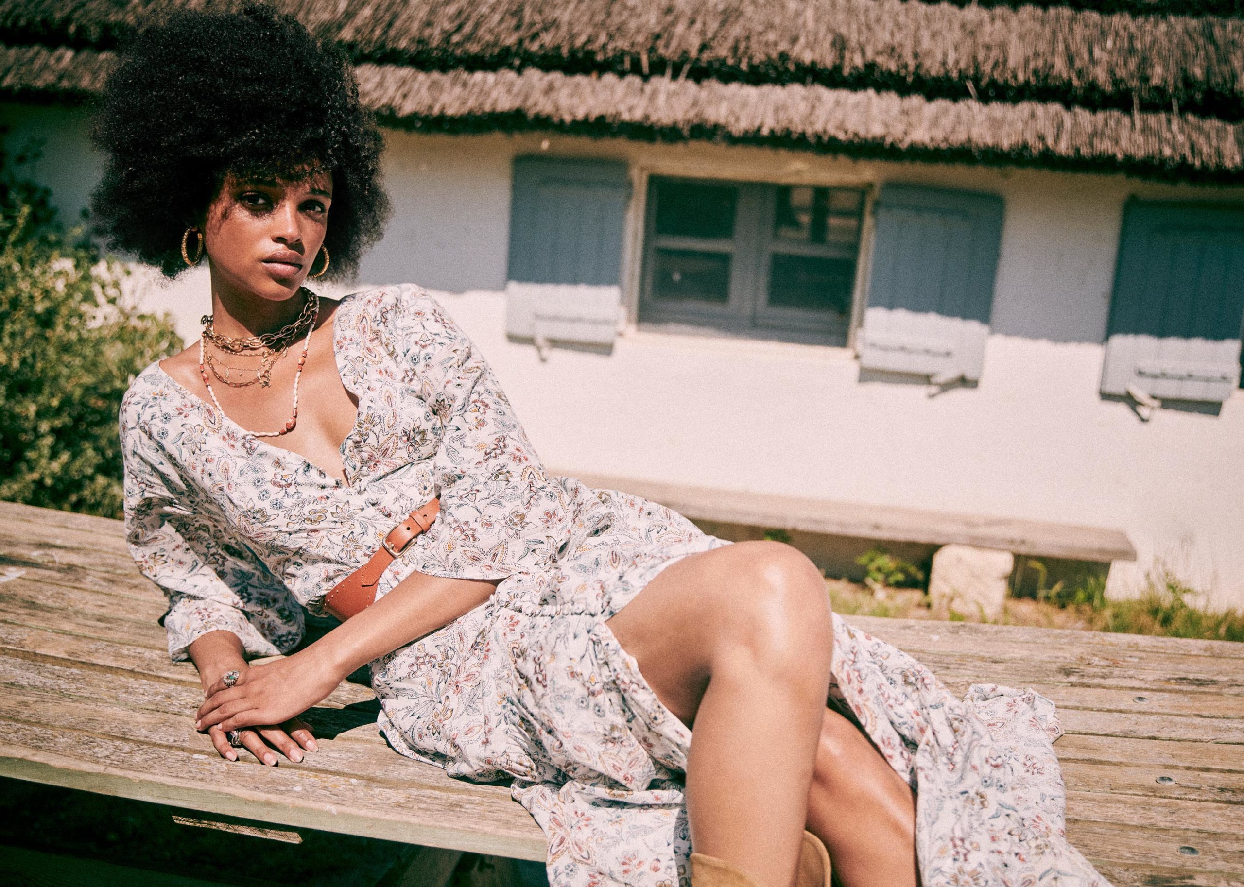 Inspiriert vom Sommer 1967 sowie dem Höhepunkt der Hippiebewegung, präsentiert die Sommerkollektion des französischen Labels Sézane florale Kleider mitsamt verspielten Volants, Details aus Häkelspitze und breiten Taillengürteln aus Leder. Einen modernen Kontrast bilden etwa grobgliedrige Goldketten, Kreolen sowie Leopardenprints, die sich gleichermaßen auf Hemden und Blusen wiederfinden und die Kollektion abrunden. Alle Stücke sind ab sofort bei Sézane erhältlich, das Lookbook könnt ihr euch bereits hier anschauen: