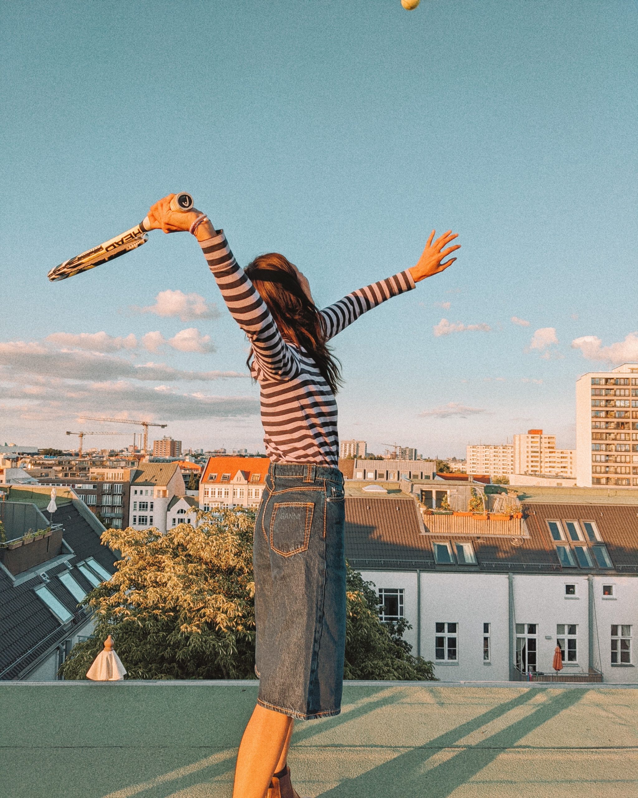 Nach einer Erkältung weiß ich meinen eigenen Körper meist doppelt zu schätzen und freue mich über alles, was er plötzlich wieder kann. Ihr müsst wissen, dass ich für gewöhnlich nämlich ein richtiger Sport-Muffel bin und mich im Grunde durch jede einzelne Übung quäle (geht nicht anders, der Rücken) – nicht aber in den letzten Tagen, in denen ich außerdem festgestellt habe, dass es überhaupt nicht immer einen Platz braucht, um zwischendurch etwa ein wenig Tennis zu spielen, zum Abreagieren zum Beispiel. Nein, der Sportplatz um die Ecke taugt auch etwas, genau wie das Dach (wisst ihr noch?). Überhaupt merke ich, wie sehr mir gerade das Draußensein fehlt. Ich bin auf einem alten Hof aufgewachsen, zwischen Johannisbeerfeldern und Zuckerrüben, die Türen standen dort immer offen und es gab Baumhäuser und Wiesen so weit das Auge reicht. Manchmal, wenn mir alles ein bisschen zu viel wird, auch die Stimmung in den Sozialen Medien, dann frage ich mich, ob ich irgendwann wohl in diese Ruhe zurückkehren werde. Kann ich das überhaupt noch? Keine Ahnung. Aber bald sind erstmal Ferien, zwei Woche lang. Und da werde ich hoffentlich so gut wie gar nichts machen oder auch alles – außer mir den Kopf zu zerbrechen.