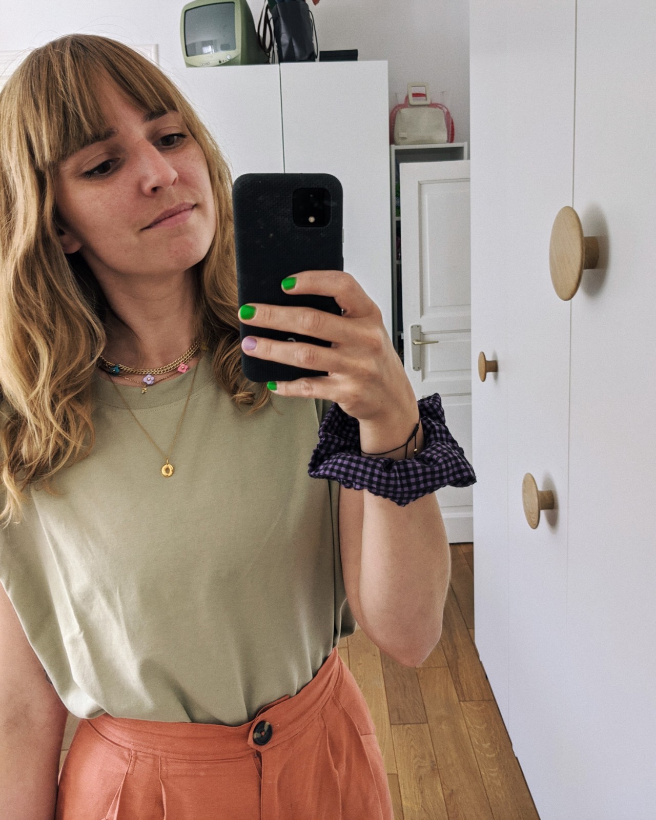 Top: & Other Stories, Shorts: Edited, Schuhe: Unknown, Kette: Vibe Harsløff & & Other Stories, Scrunchie: Ganni