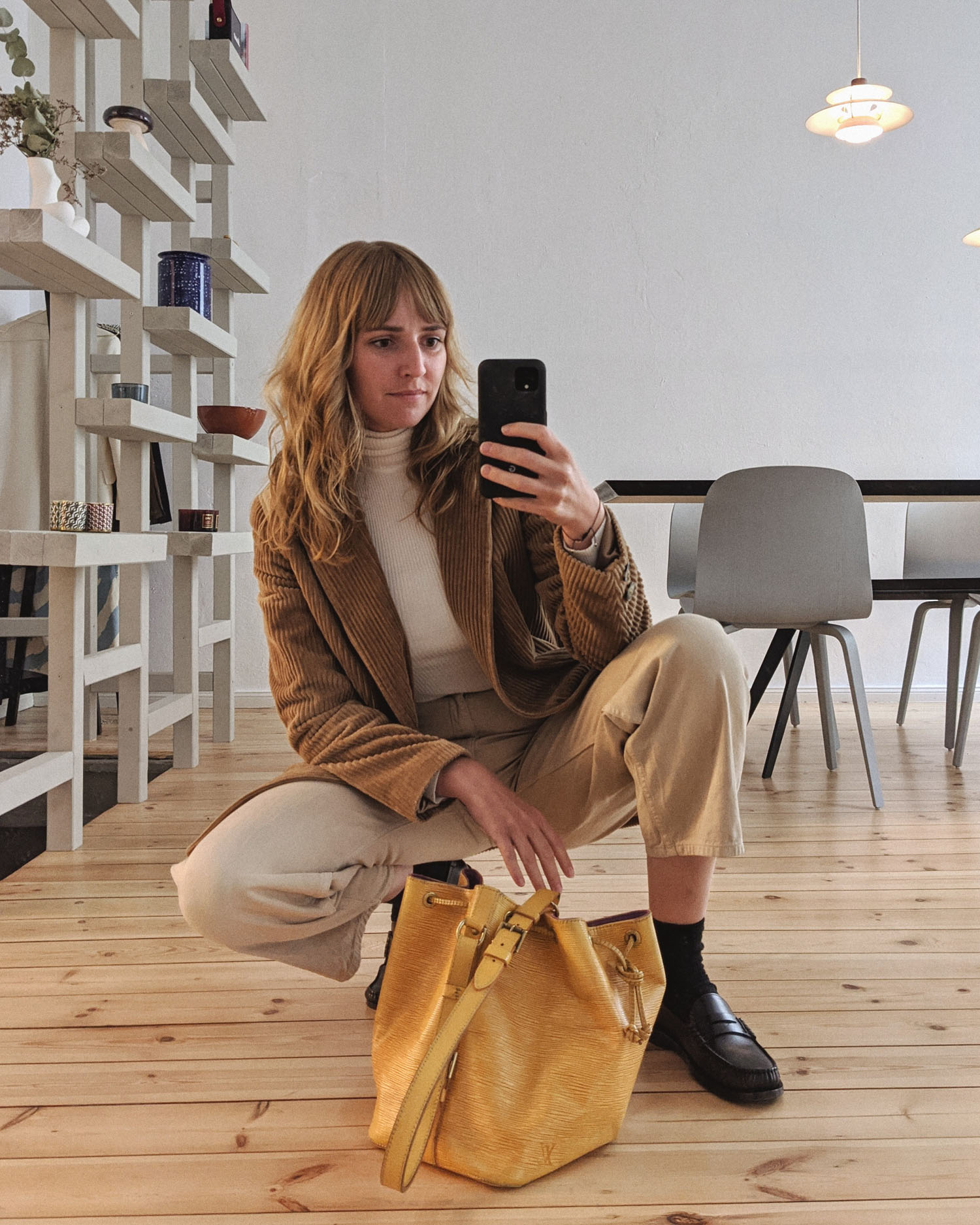 Blazer: Ganni, Rolli: Wolford, Jeans: & Other Stories, Schuhe: Saint Laurent, Tasche: Louis Vuitton via Vestiaire Collective