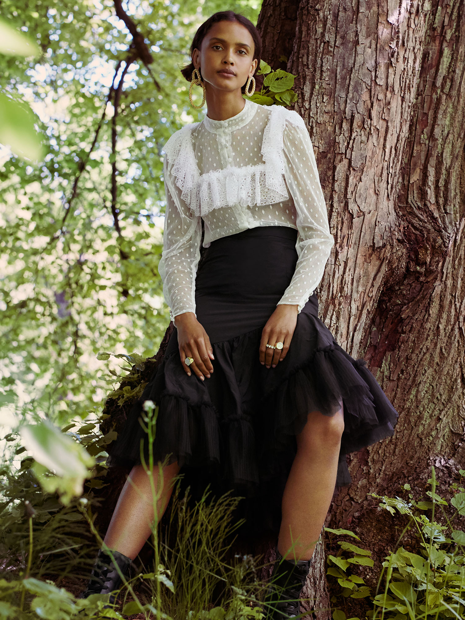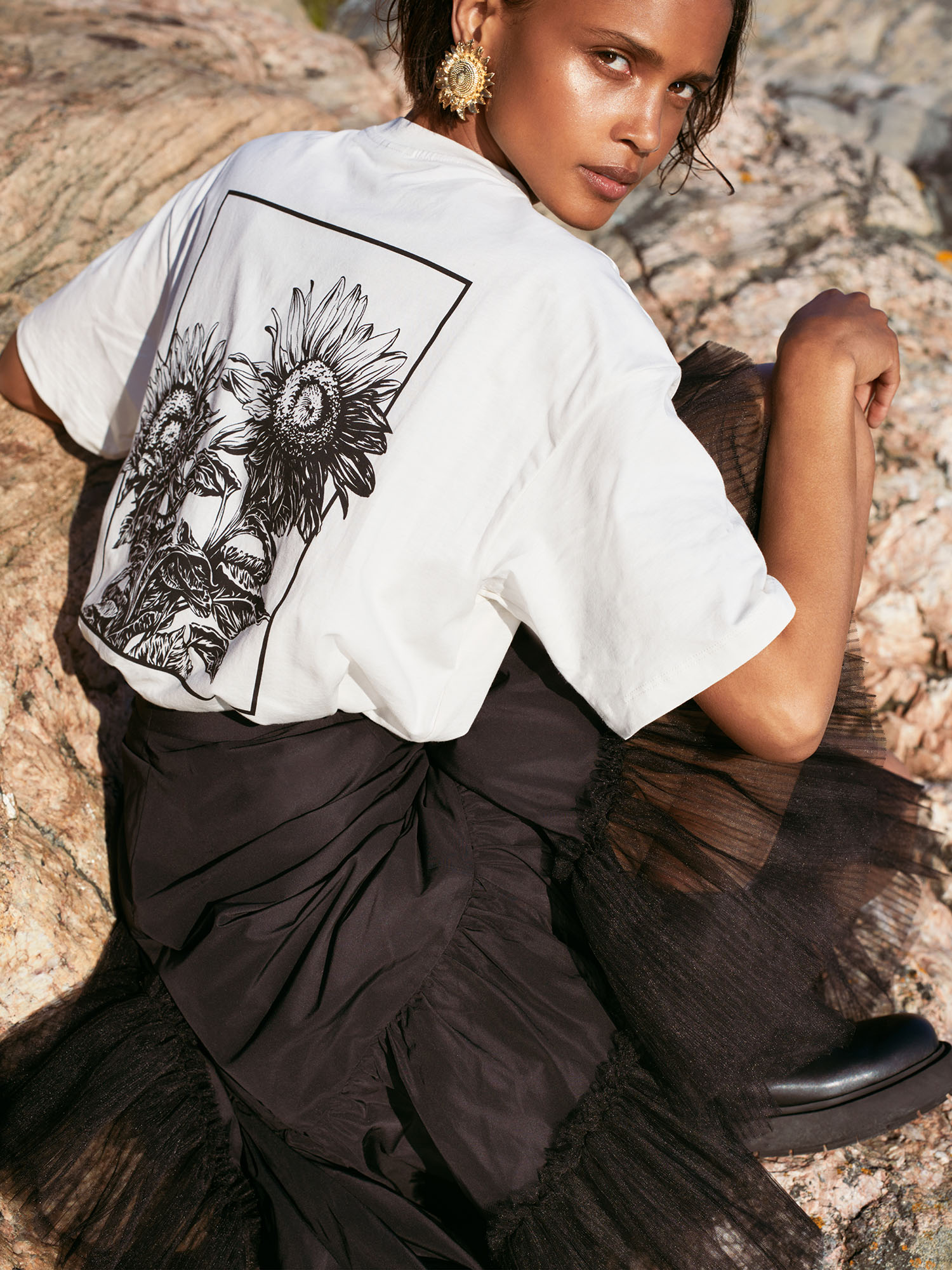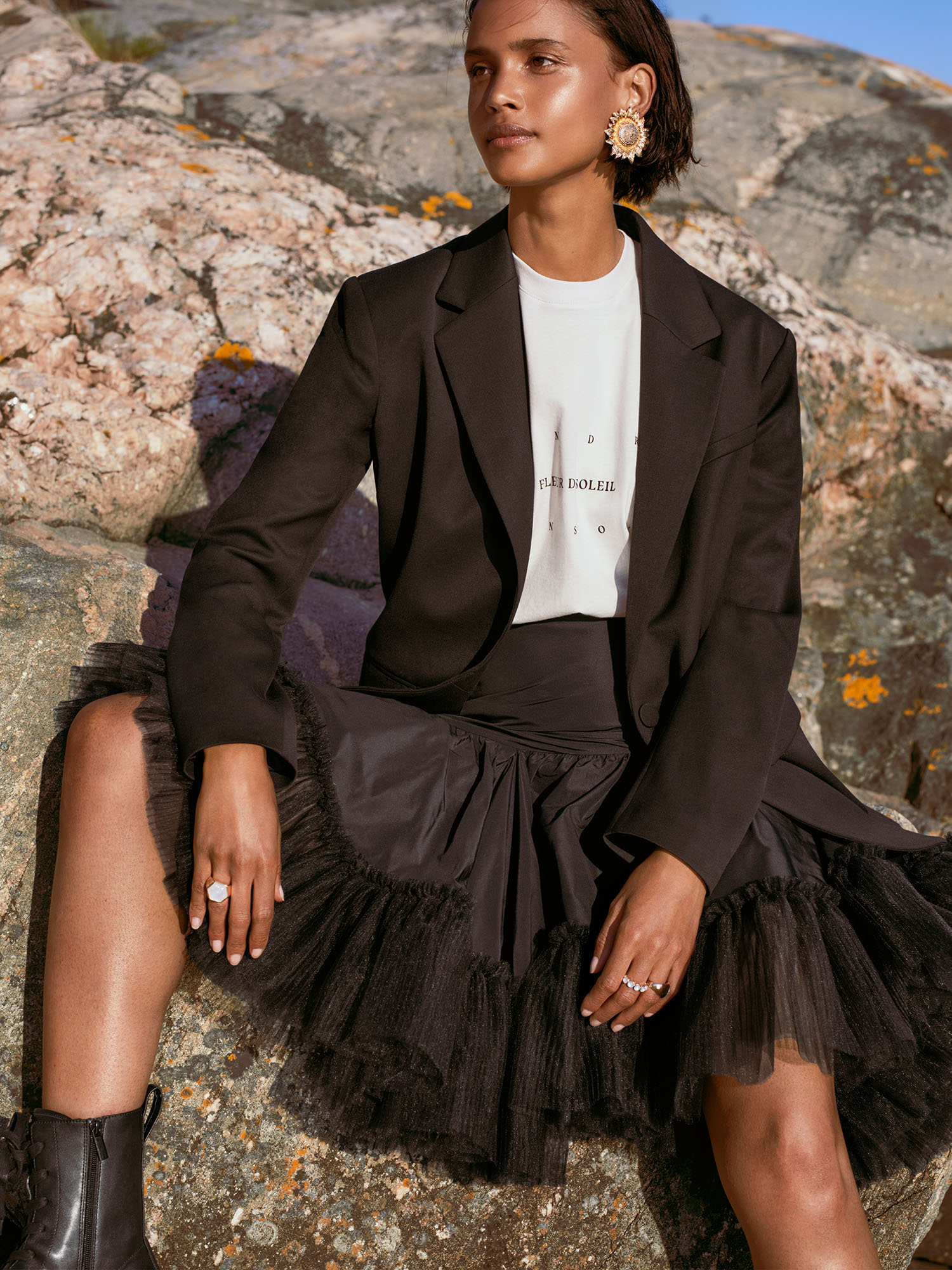 Gemeinsam mit Designerin Sandra Mansour lanciert H&M nun eine limitierte Damenkollektion, die sich gleichermaßen romantisch als auch modern zeigt. Neben verspielten Kleidern und Blusen mit Volants, bestickter Organza und Jacquards beinhaltet die Linie auch klassische Blazer sowie fulminante Schmuckstücke — allesamt inspiriert von der Natur sowie natürlichen Elementen. Die gesamte Kollektion ist ab dem 27. August bei H&M erhältlich, einen Blick in das Lookbook könnt ihr bereits hier werfen: