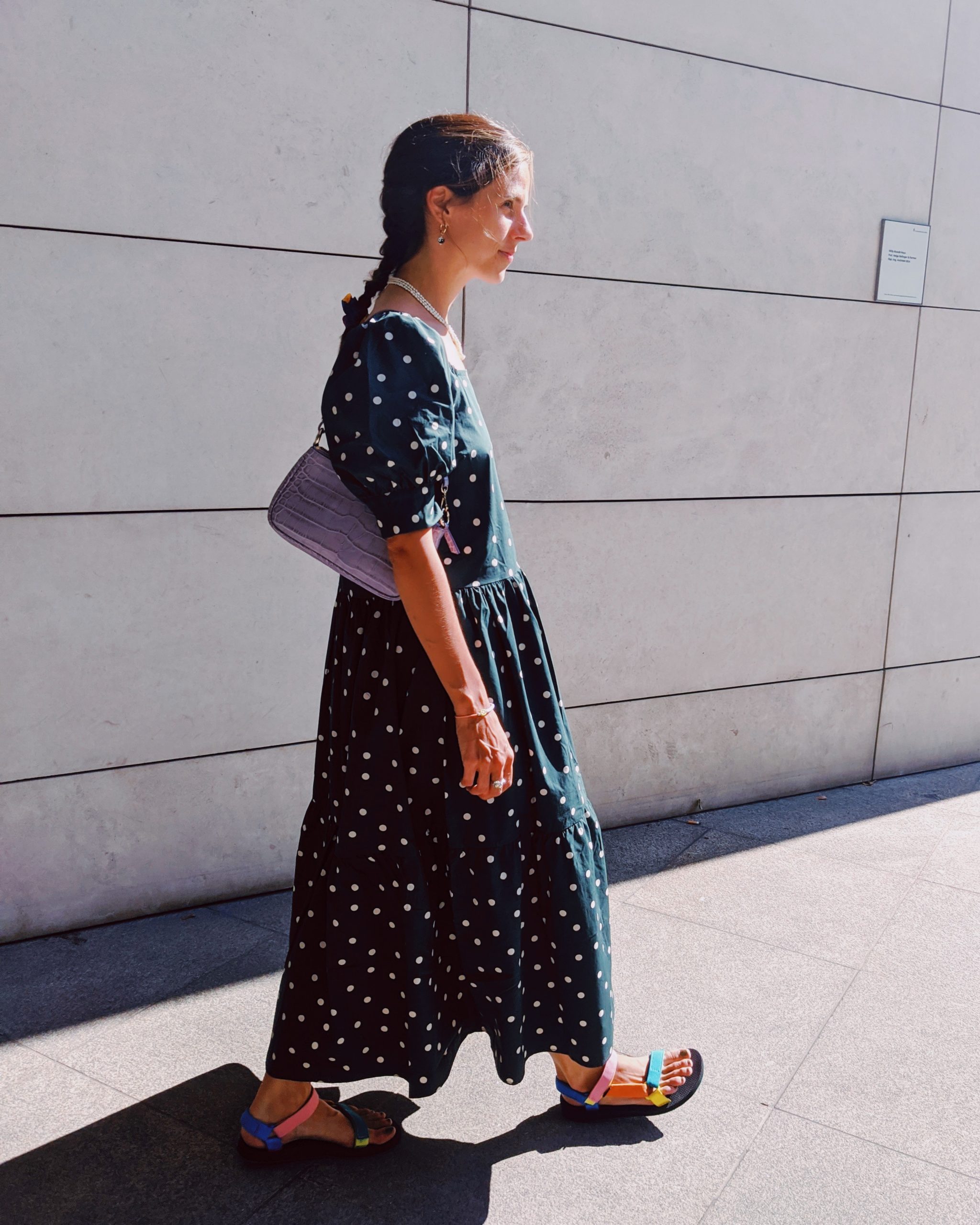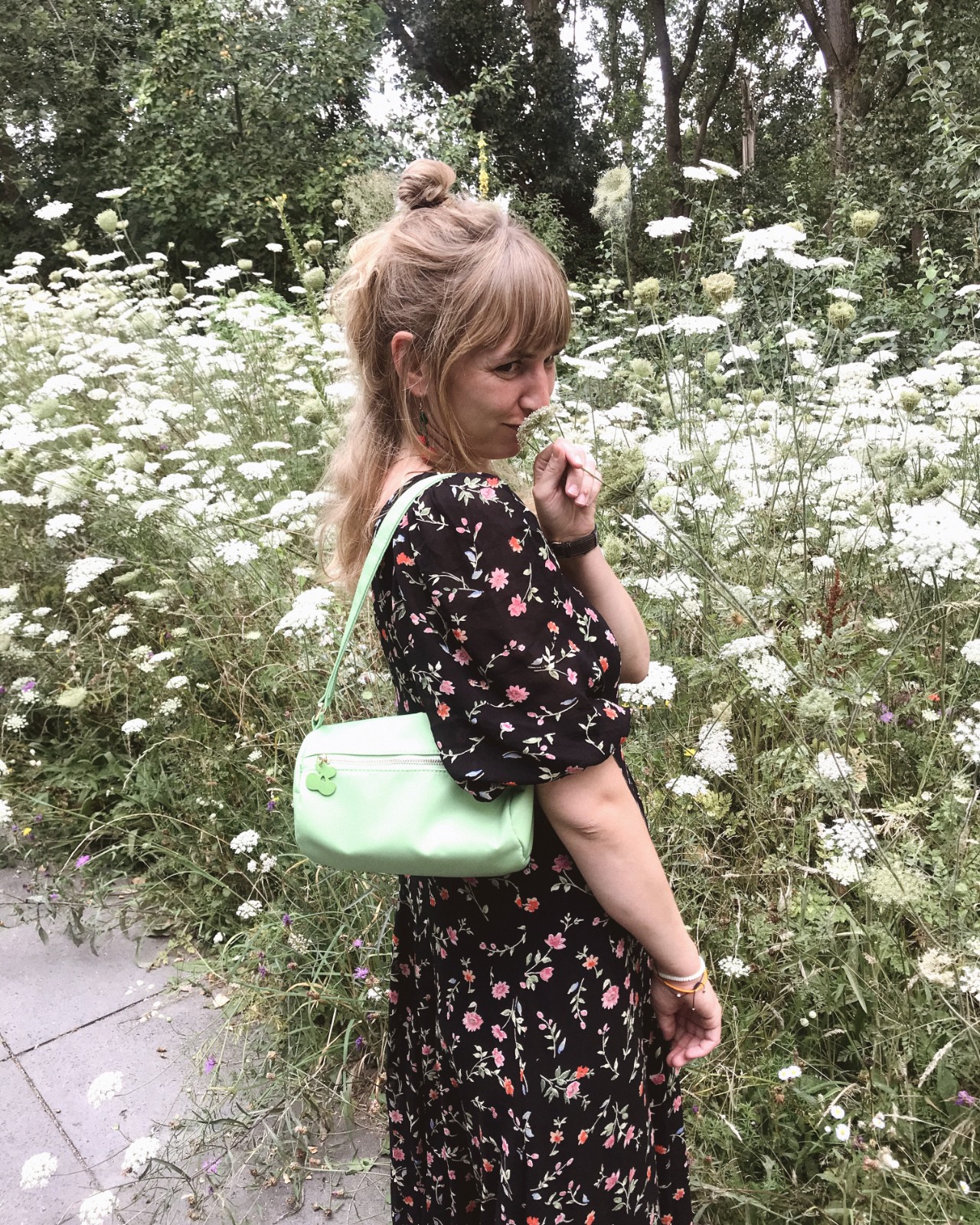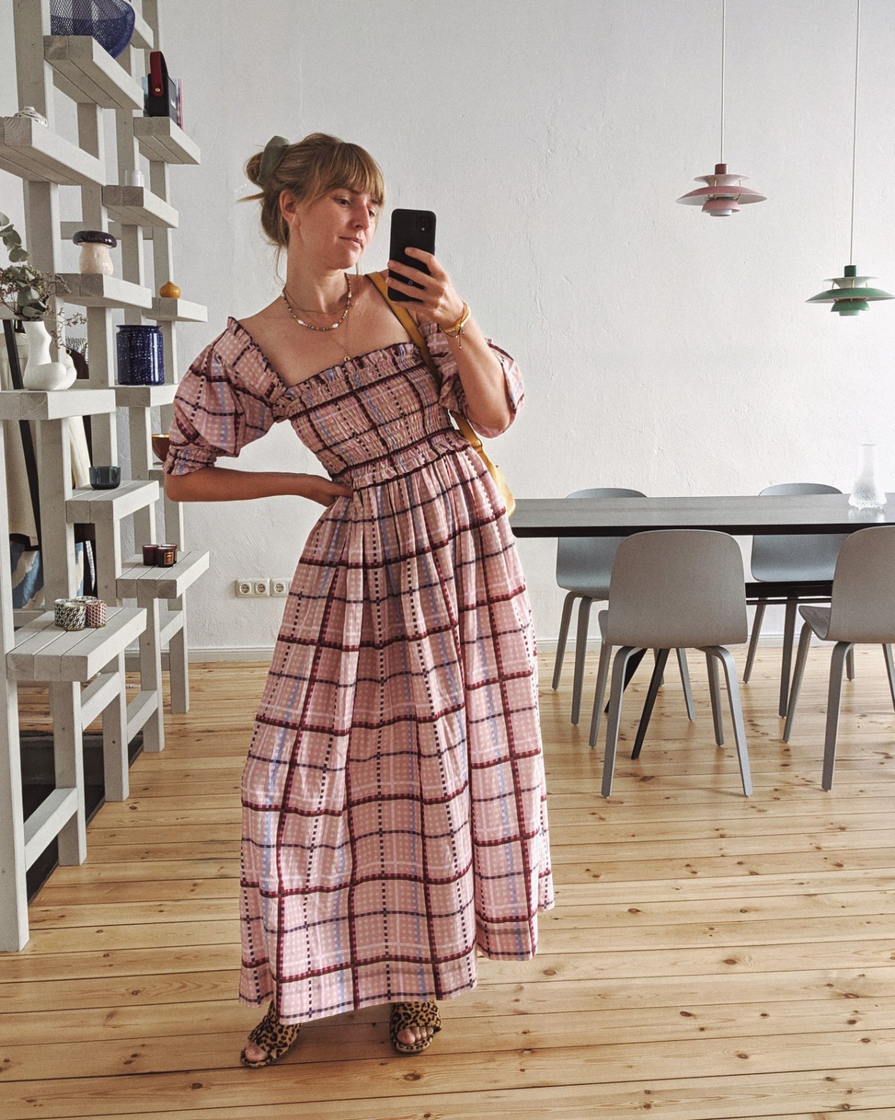 Kleid: Ganni (leider alt, Rock & ähnliches Kleid), Tasche: Edited the Label