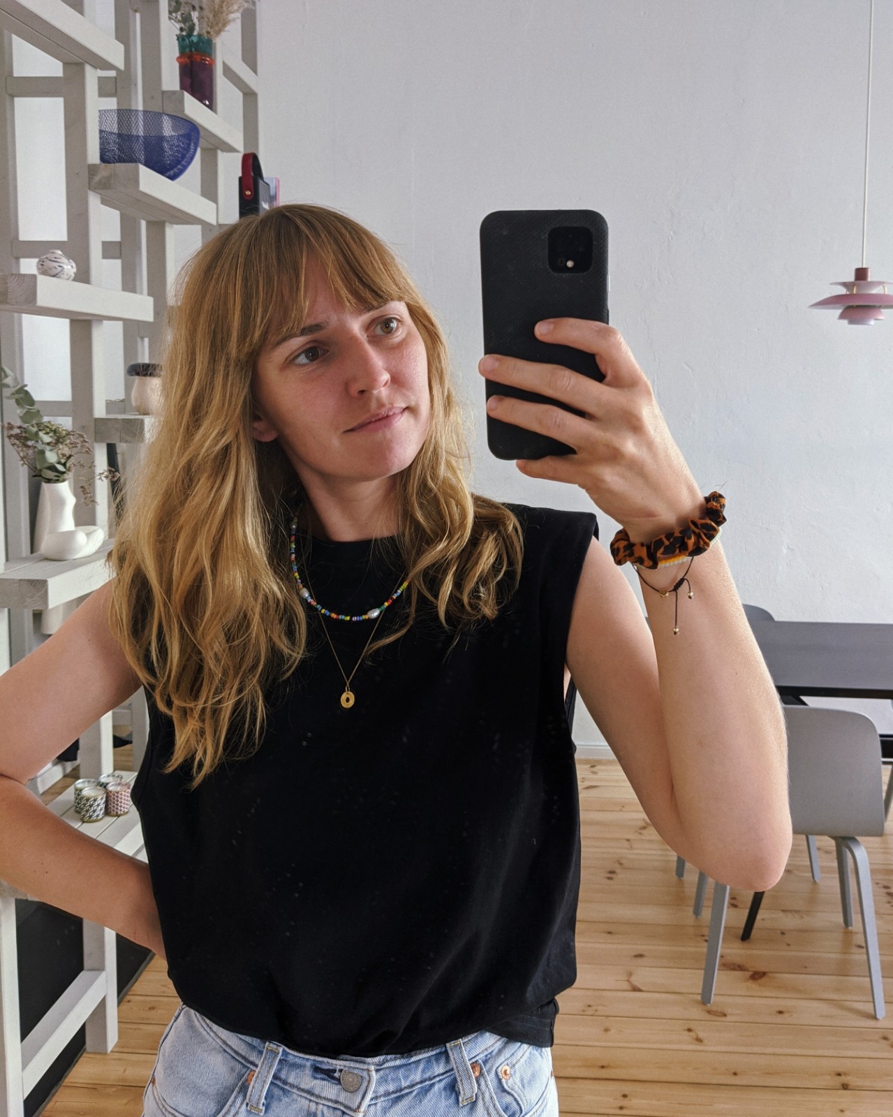 So eine Sommerpause, die hat durchaus auch ihre Vorteile, selbst wenn der eigene Urlaub noch aussteht. Zwar verbrachte ich meine Zeit von Montag bis Freitag weiterhin vor dem Rechner, allerdings mit wesentlich mehr Luft und Ruhe, was mir in Anbetracht der steigenden Temperatur und meinem damit verbundenen Sommerhirn reichlich gelegen kam. An den Wochenenden flüchtete ich meist vor der Hitze, mal in einen nahe gelegenen Park, mal in Katharina Grosses „It Wasn’t Us“ Ausstellung im Hamburger Bahnhof (sehr empfehlenswert) und aß spät abends auf dem Balkon, wo sich die Wärme noch immer staute. Ich blätterte in neuen Magazinen (A Magazine Curated by und Purple), las in Büchern, die dem Kopf guttun (spätestens nach meinem Urlaub werde ich meine Favoriten mit euch teilen) und hörte beim Kochen Musik, die gute Laune macht. Ich entdeckte großartige Labels (etwa KKCO, Christina Seewald und Bettunika), malte mir die Fingernägel Sonnengelb und Grasgrün, schlitterte haarscharf an einem Küchentisch vorbei und suchte mitten in der Nacht nach neuen Frisuren. Und immer wieder fragte mich, wie es eigentlich möglich ist, dass die Zeit so schnell an mir vorbeizieht und ich es nicht einmal schaffe, einen kleinen Moment festzuhalten (als Antwort kramte ich kürzlich meine analoge Kamera hervor und begann wieder Tagebuch zu schreiben).