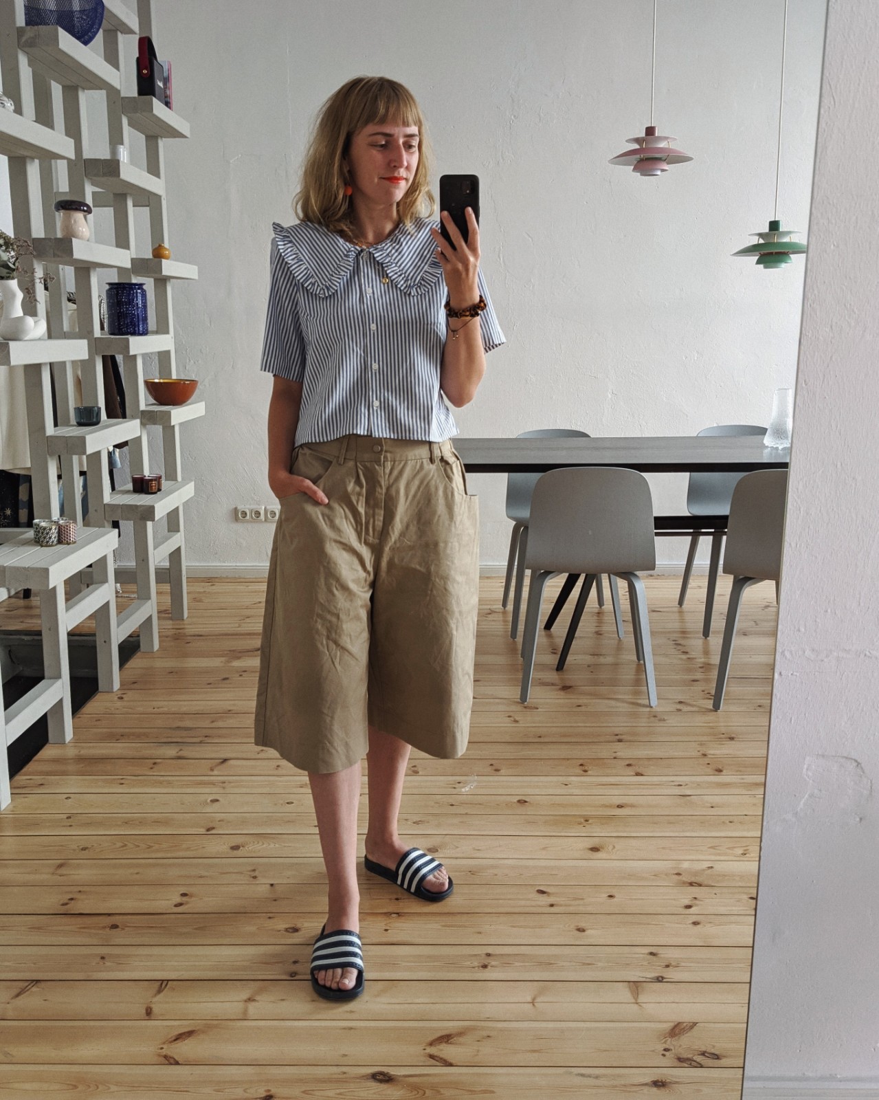 Bluse: Monki, Culottes: Acne Studios (leider alt), Schuhe: Adiletten, Ohrringe: Folkdays x Jane Wayne, Ketten: Selbstgemacht & Vibe Harsløf, Lippenstift: Gucci Beauty