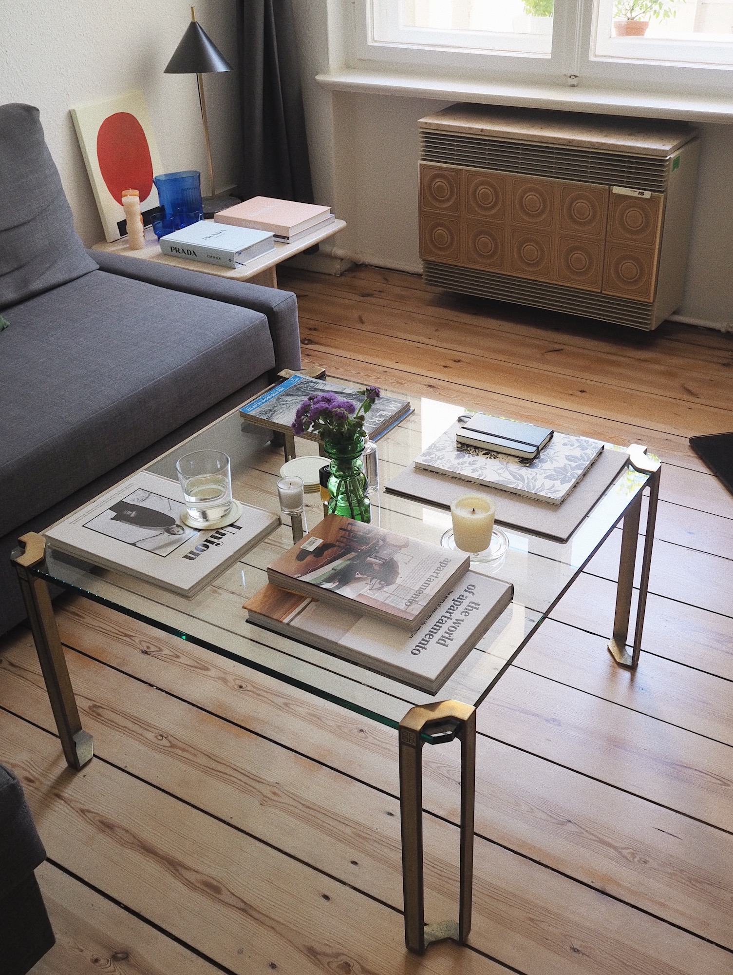 Nun, das zerknautschte Sofa ist noch immer das erste, das ich von meinem Studentinnenbudget gekauft habe und so langsam sehne ich mich nach einem Update — was genau es werden soll, weiß ich allerdings noch nicht, das Schöne ist ja aber, dass es im Grunde genommen keine Eile hat. Stattdessen kümmerte ich mich in der Zwischenzeit um einen Beistell- sowie einen Couchtisch, die ich beide für wenig Geld auf Ebay Kleinanzeigen fand. Den Tisch aus Travertin fand mein Freund zunächst schrecklich, nachdem ich ihm all die schönen Exemplare des amerikanischen Vintage Stores Popup Home (meine Interior Inspiration Nummer 1) zeigte, verstand jedoch auch er, warum ich nicht nachgab.