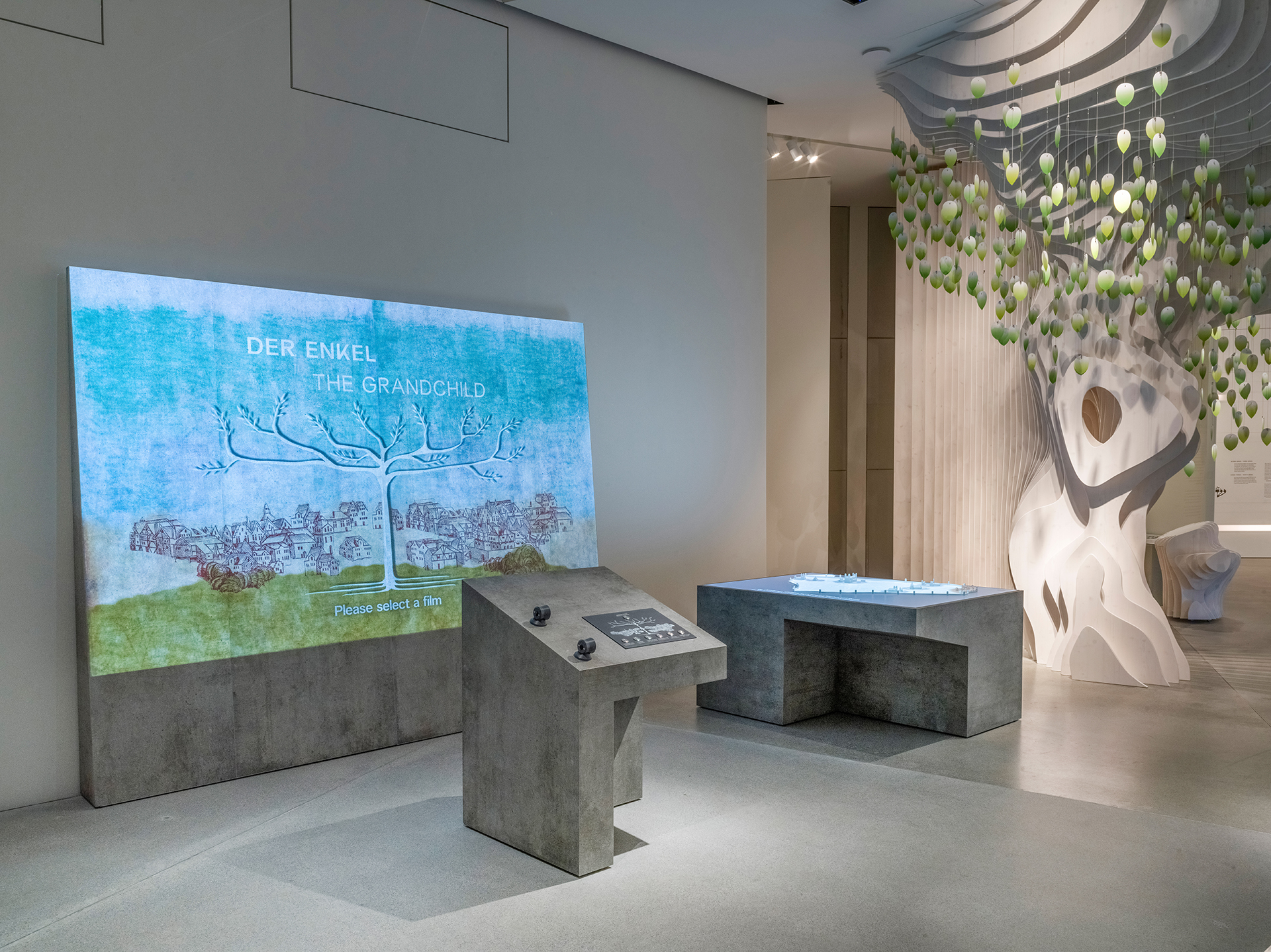 Um Fragen wie diesen auf den Grund zu gehen, beginnt die Ausstellung im 2. Obergeschoss mit der Tora und dem Regelwerk vieler Juden und Jüdinnen, mit dem Ursprung jüdischen Lebens also. Und genau hier finden wir auch den symbolischen Baum, dem wir mit unseren Wünschen Blätter schenken können – und dessen Grundidee sich durch die gesamte Ausstellung zieht. Was aber bedeuten jüdische Wurzeln überhaupt?