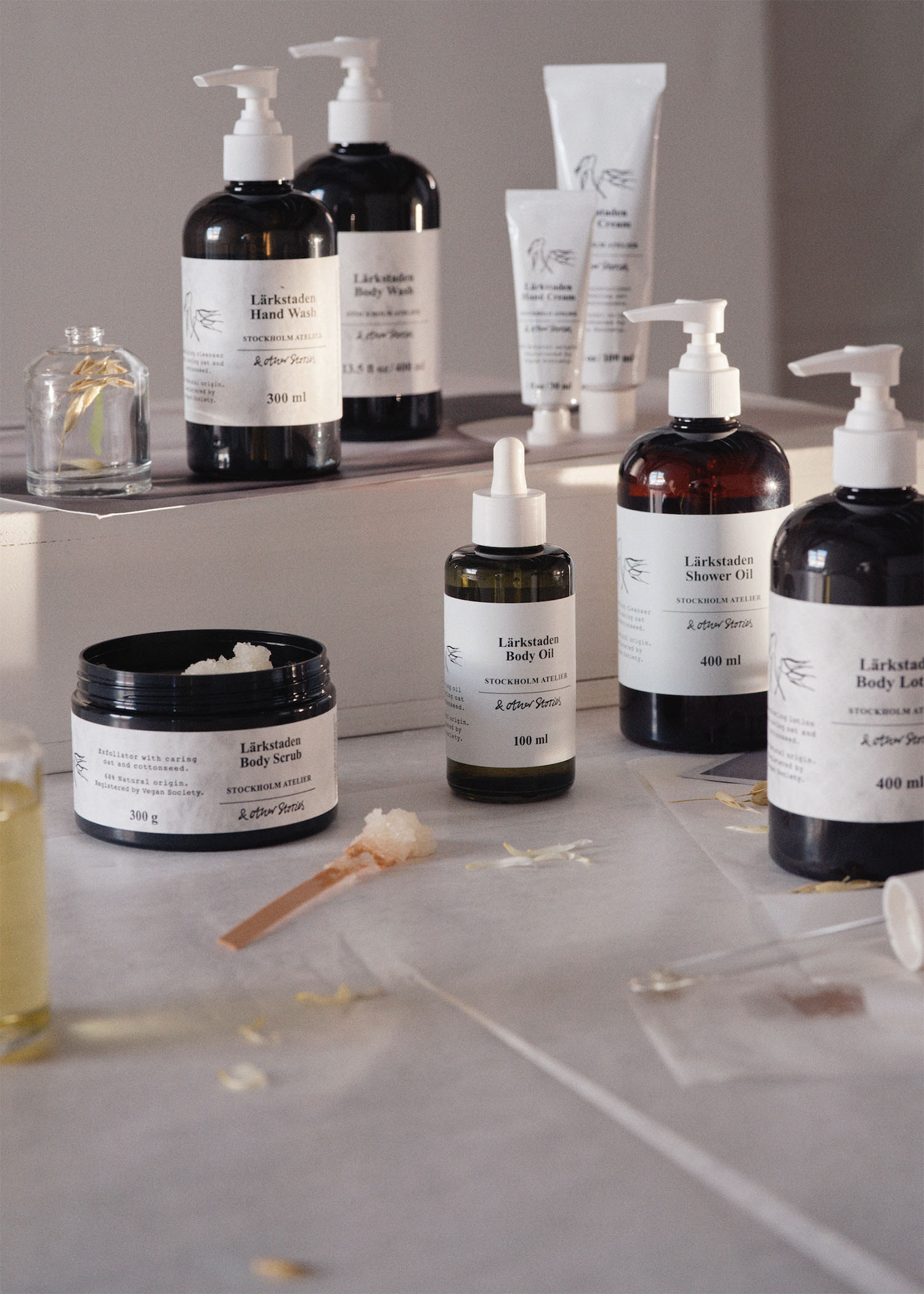 Die ausgeprägtenDuftnoten „Humlegården”, „Lärkstaden” und „Fjäderholmarna” treffen auf qualitativ hochwertigen Inhaltsstoffen wie Baumwollsaat und Hafer, die für ihre hautpflegenden, nährenden Eigenschaften bekannt sind.Die Verpackung wurde so konzipiert, dass sie perfekt auf das jeweilige Produkt ausgerichtet ist und gleichzeitig möglichst wenig der Umwelt schadet. Aus diesem Grund werden die Produkte aus der Serie in Flaschen aus recyceltem PCR-Kunststoff oder Glasbehältern, die sich wiederverwerten lassen, abgefüllt und mit Aluminiumrohren ergänzt, die beliebig oft recycelt werden können.