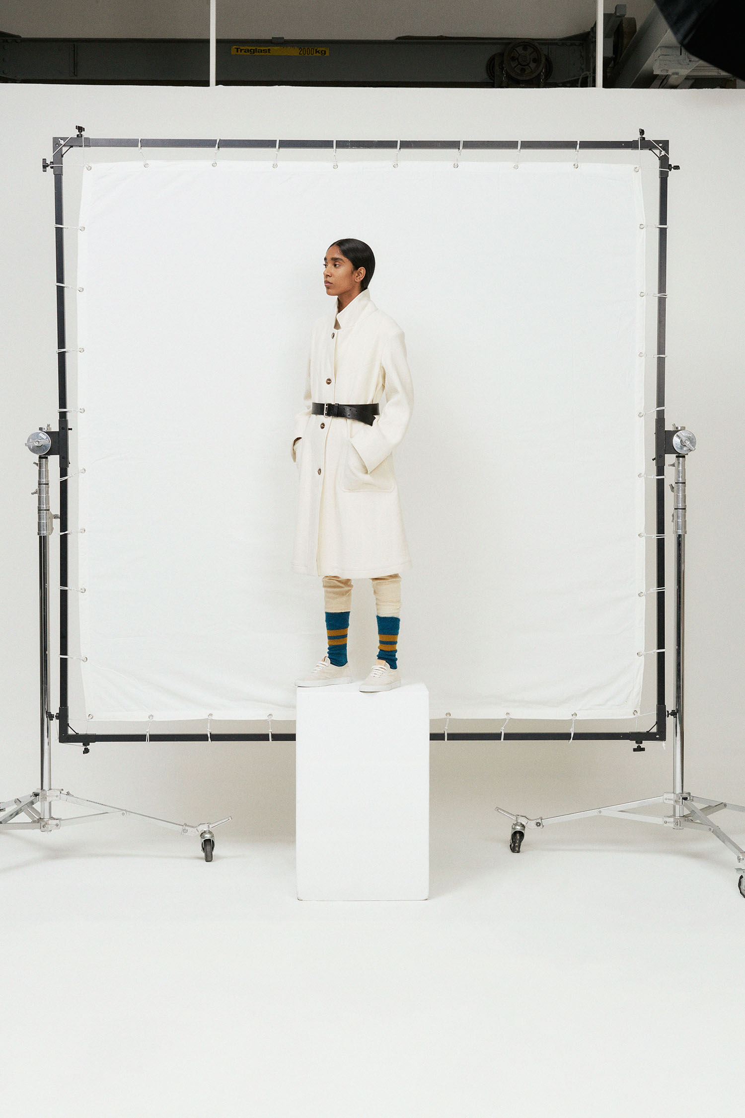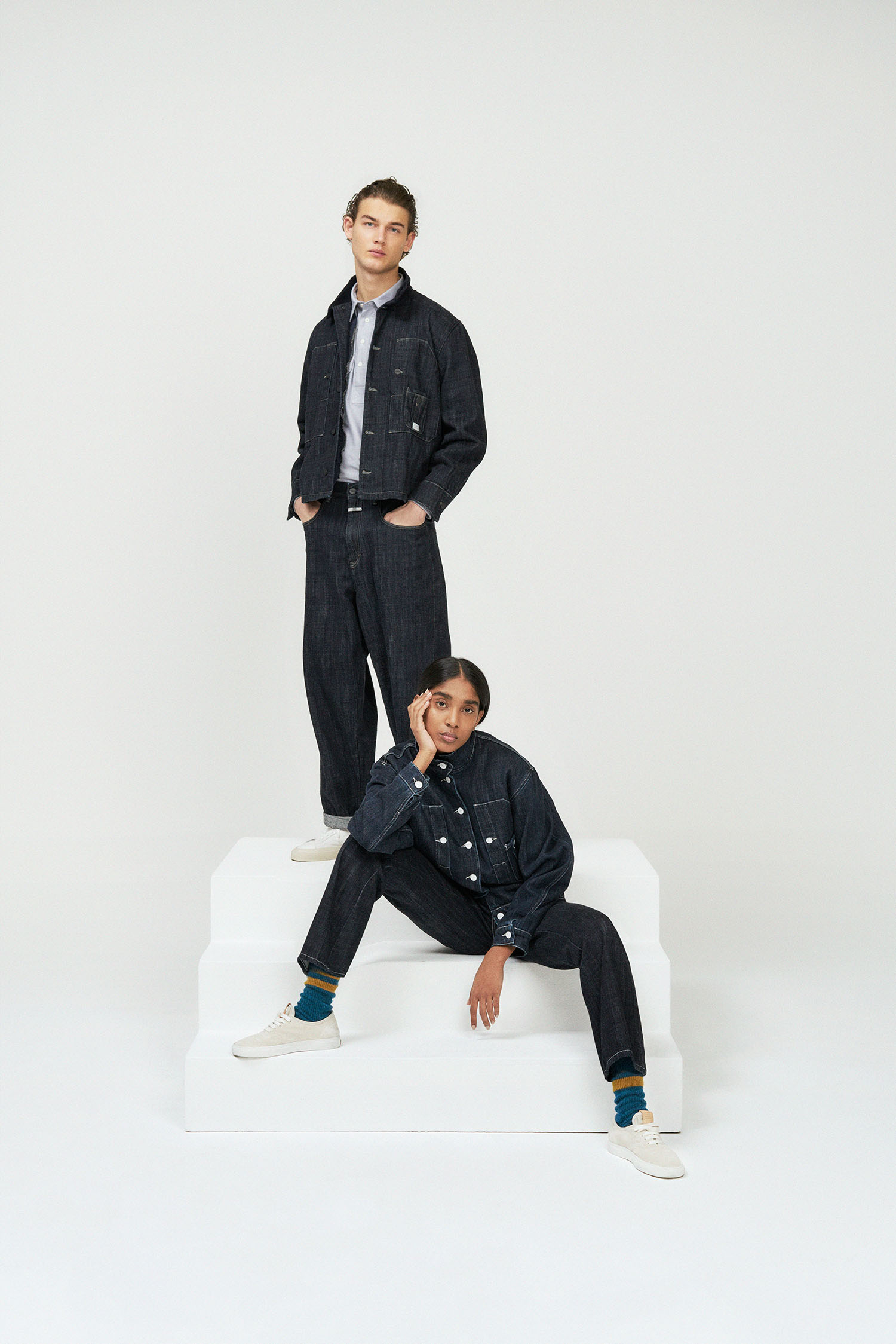 Die Kapselkollektion besteht aus drei Key Pieces – der Yoko Jeans, einer taillierten Jacke mit Gürtel und einer Tote Bag. Alle Drei sind aus einem Patchwork-Design aus verschiedenen Bio-Denim-Washes gefertigt.