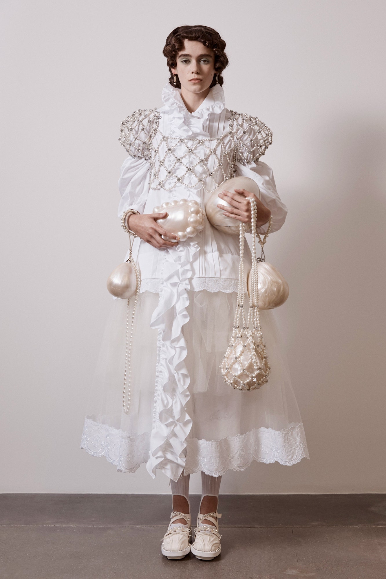 Zur Show: Ihre Kollektion präsentierte Simone Rocha in Form eines fast 3-minütigen Videos, auch, wenn sie ihre Mode wohl dennoch lieber innerhalb einer Runway Show gezeigt hätte: „I’m not going to lie: I’ll be the first to say I love runway shows. […] Clothes are made of cloth, and emotions, and they come to life on a body.” — wunderschön anzusehen ist die Kollektion, die zuweilen von Richard Princes „Bettie Kline“ Fotos inspiriert war, dennoch allemal.