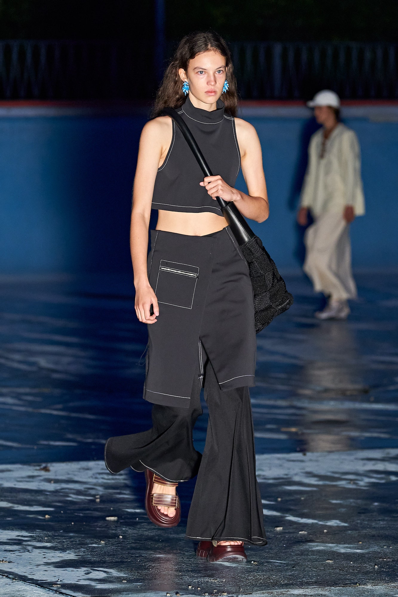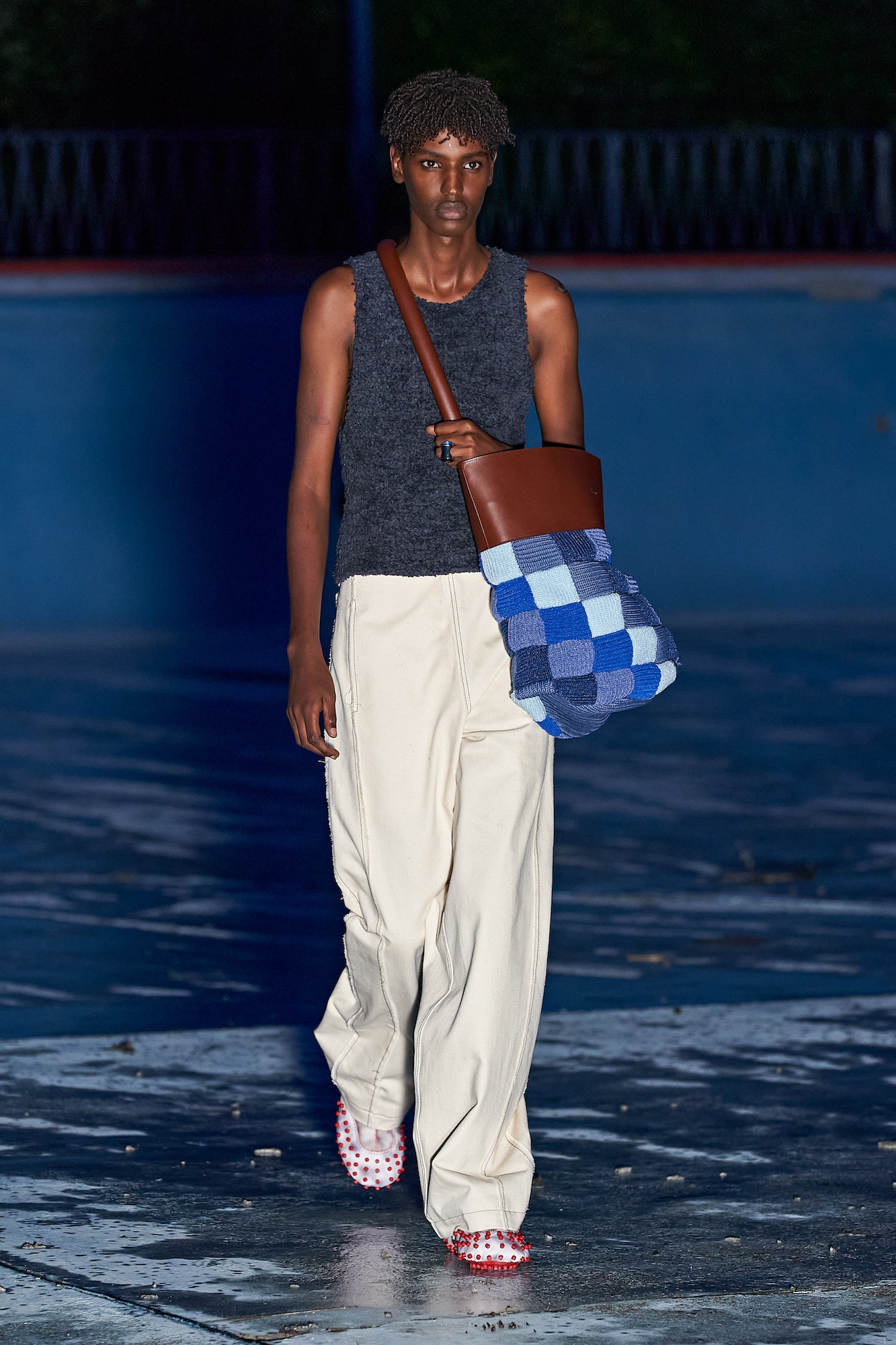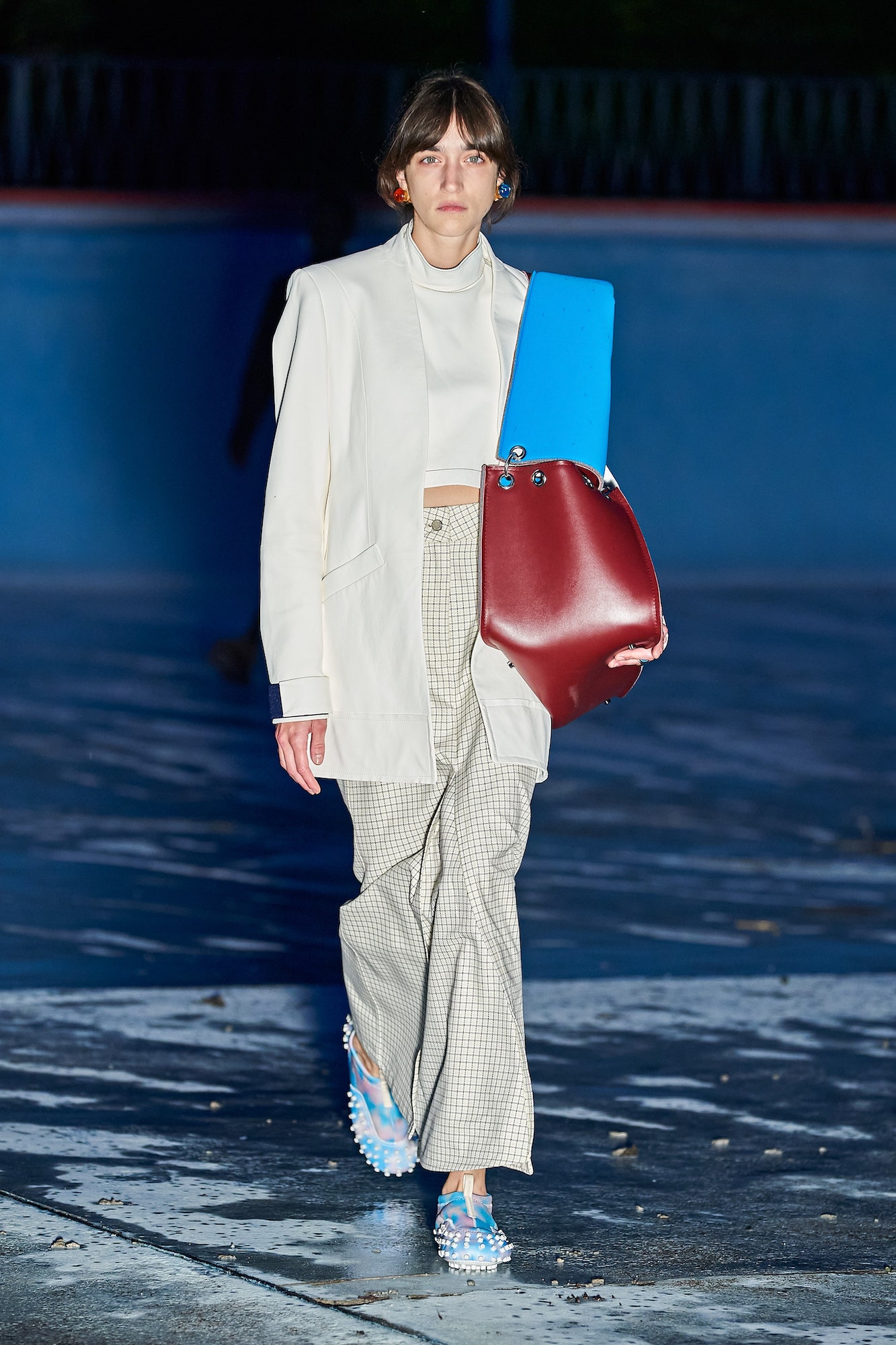 Zur Show: Als reines Modelabel sehen sich Simone Rizzo und Loris Messina, Gründer von Sunnei, nicht, vielmehr halten sie am Community-Gedanken fest. So formten sie während des Lockdowns auch ihr Headquarter zu einer Art Creative Hub um, welches etwa Musiker*innen und Kreativen die Möglichkeit bot, sich auszutauschen und ihre Arbeiten mit anderen zu teilen. Der Hang zur Musik liegt dabei nicht fern, gilt sie doch als eine der Hauptinspirationen Sunneis: „The ’90s for us mean Björk, Radiohead, the MTV visuals“. Einen artistischen und dennoch minimalistischen Ansatz fand man in der SS21 Kollektion, die in einem leeren Schwimmbad präsentiert wurde.