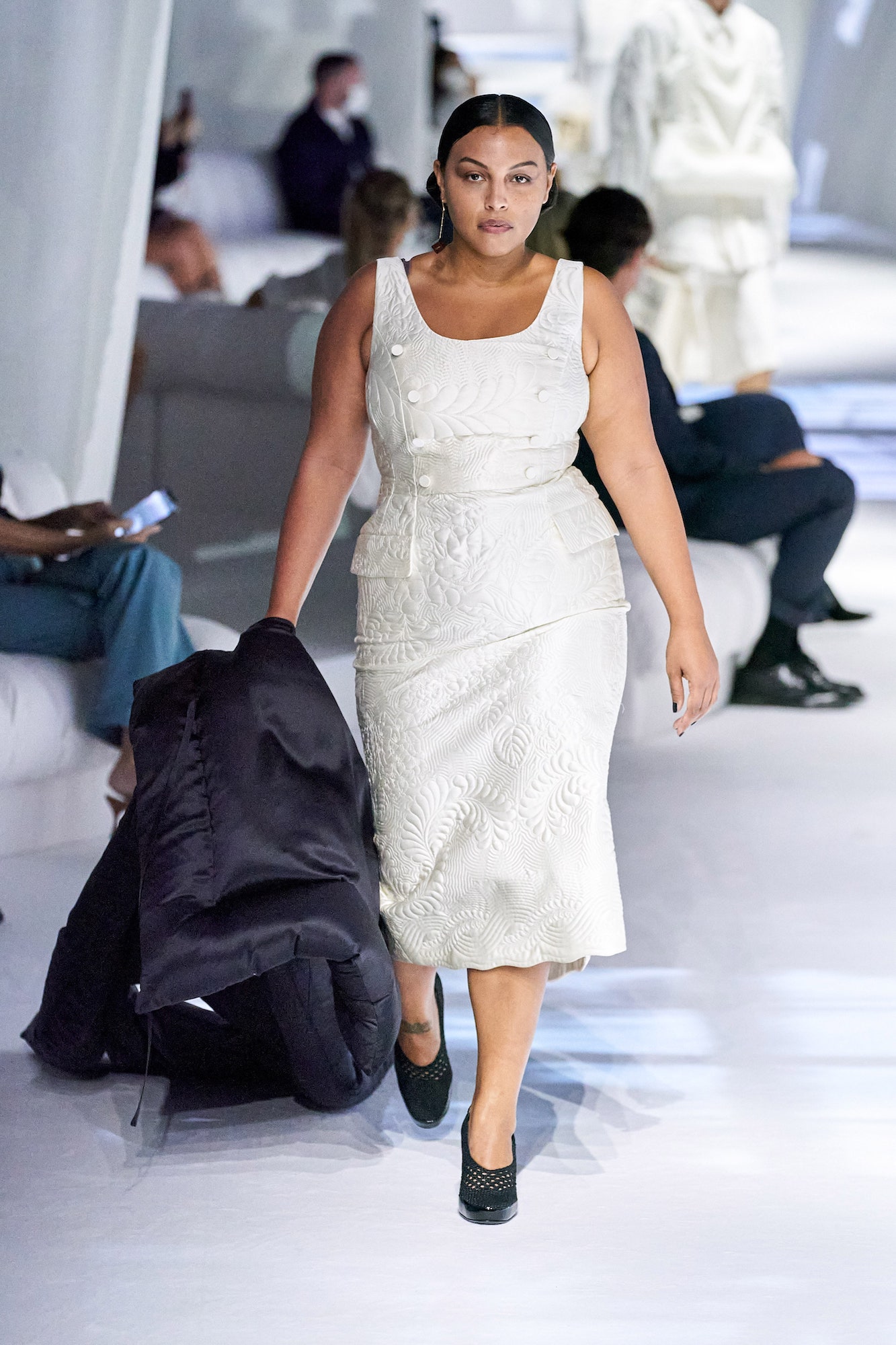 Möchte ich mir immer wieder anschauen: Paloma Elsesser auf dem Fendi Runway, die Schulter-Details des Kleides aus Look Nr. 10.