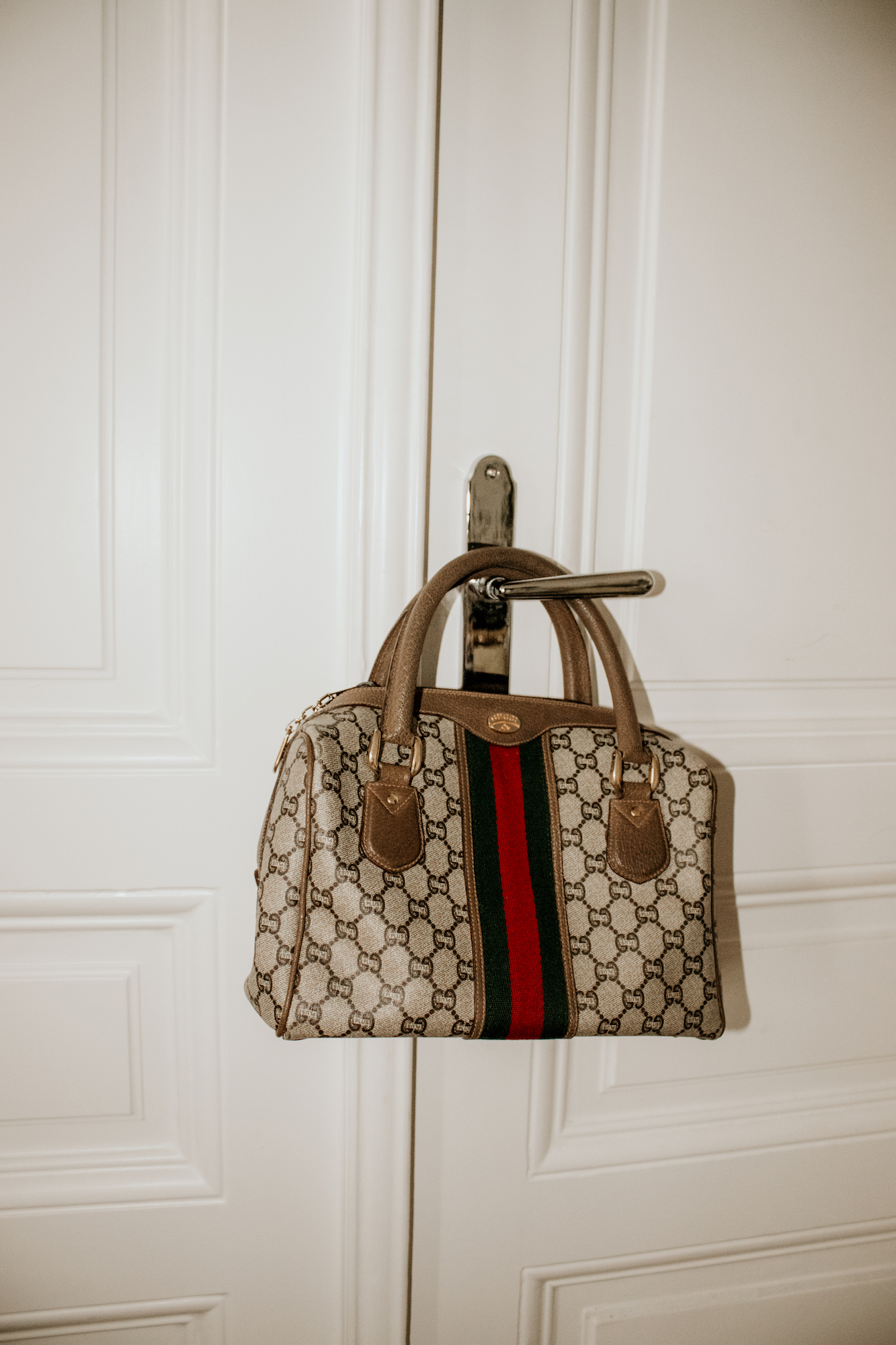 Vintage-Gucci-Plus-Tasche: Gucci Plus war in den 80ern eine losgelöste Marke von Gucci, weil einer der Geschwister aus dem Familienbusiness aussteigen und sein eigenes Label gründe wollte. Der Plan ist nicht aufgegangen und das Label relativ schnell gefloppt. Deswegen gab es nur wenige „Gucci Plus“ Teile. Das macht sie zur absoluten Rarität. Was ich allerdings noch mehr liebe als den Logoprint, ist die Symbolik hinter der Tasche. Sie steht in meinen Augen für Rebellion und zumindest dem Versuch dem System zu trotzen. Genau meins.