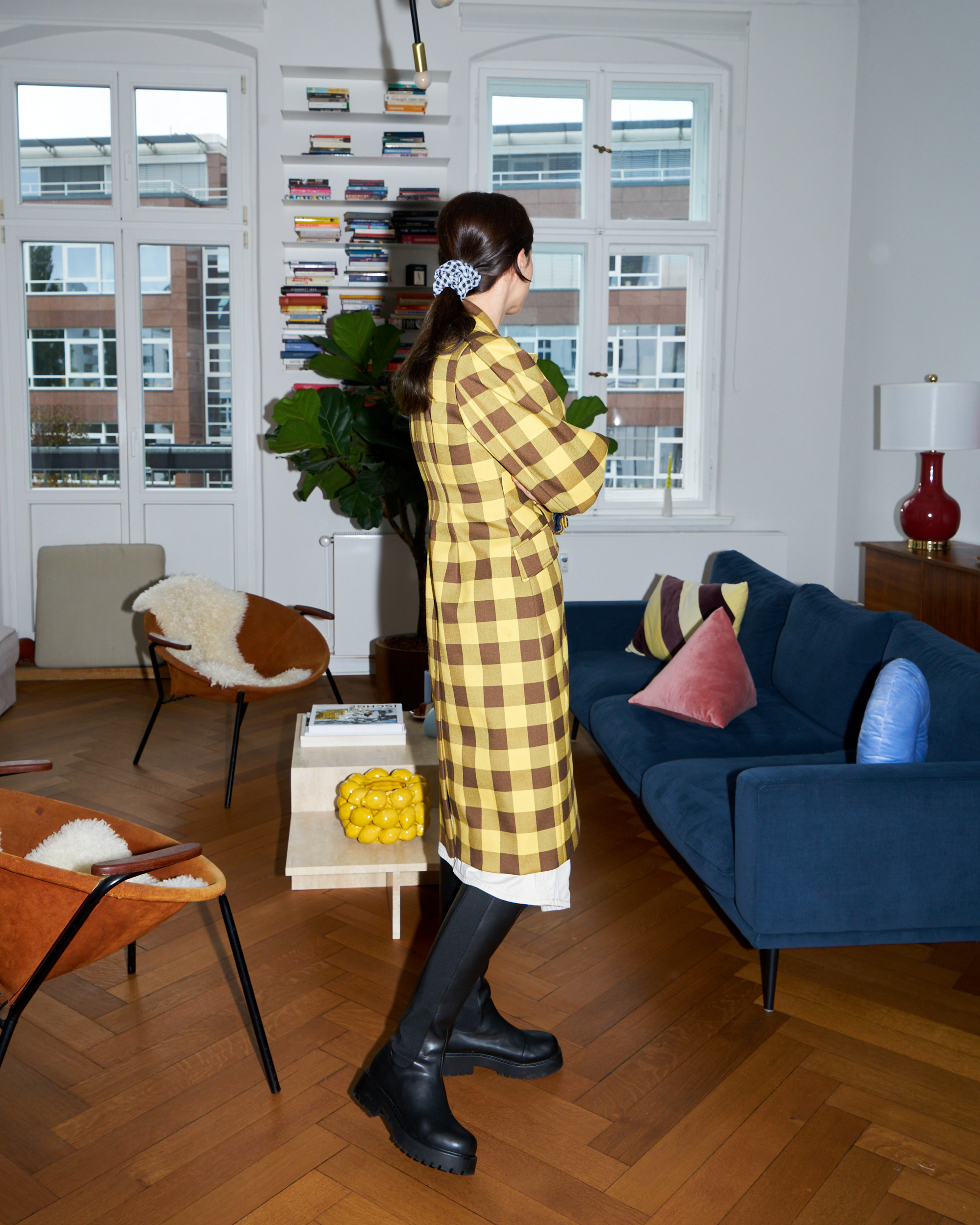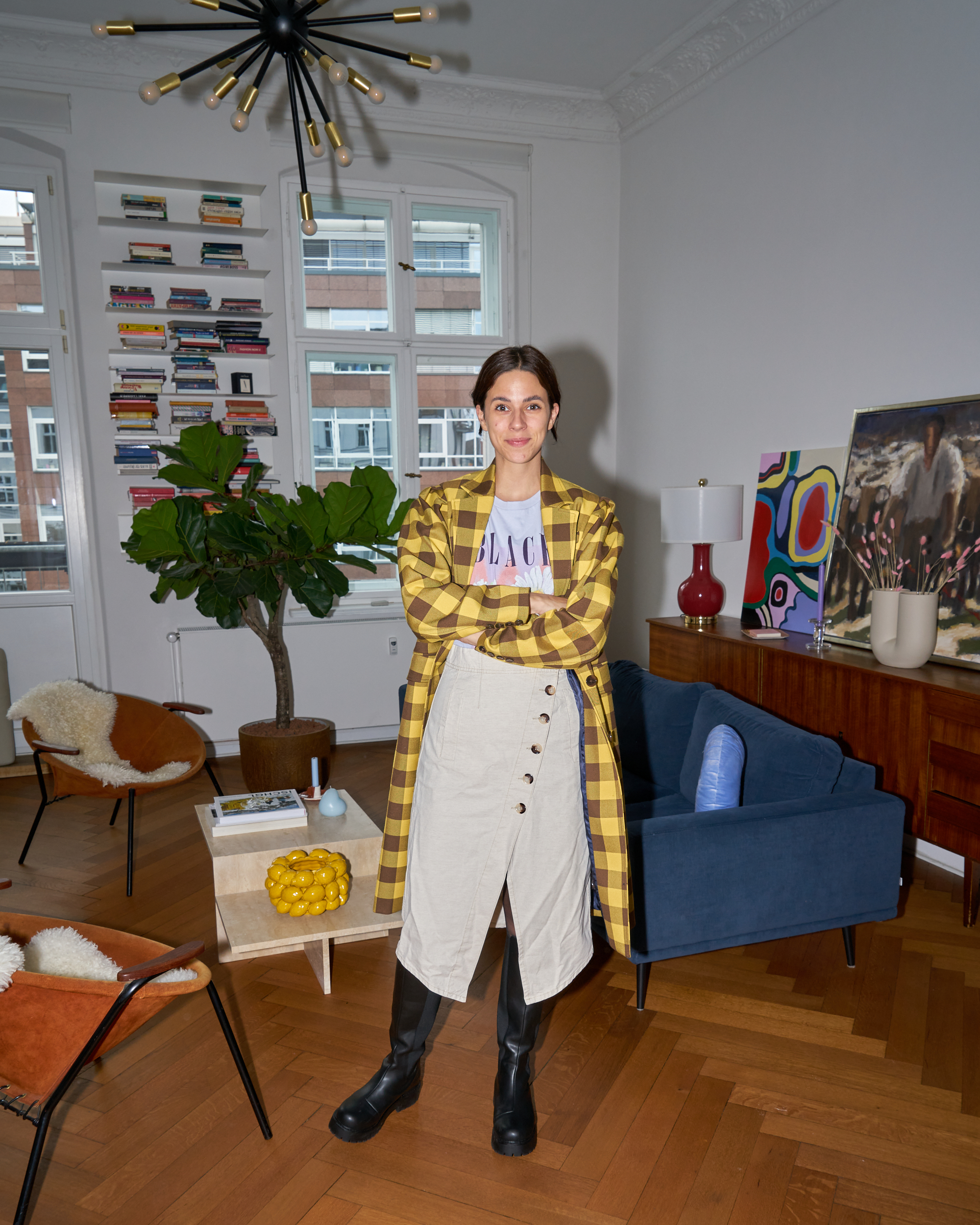 Für gewöhnlich mache ich mir weder etwas aus Klischees noch aus Stilregeln, aber diesmal war es ein bisschen anders, so ehrlich mag ich gern sein. Ich wusste an diesem Morgen nämlich, dass ich in der Schule meines Kindes noch kurz etwas zu besprechen hatte (ich bin nämlich tatsächlich Elternvertreterin, wer hätte das gedacht), weshalb ich, so hirnverbrannt und rückschrittig dieser Gedanke auch sein mag, zumindest ein Stück weit darauf achtete, wie eine Erwachsene auszusehen – und nicht wie mein 16-jähriges Ich, das gleich zum Bikini Kill Konzert abzockelt. Es wurde also ein braver, wadenlanger Rock in Kombination mit ordentlich gebürstetem Haar und meinem karierten Mantel. Favoritenpotenzial.